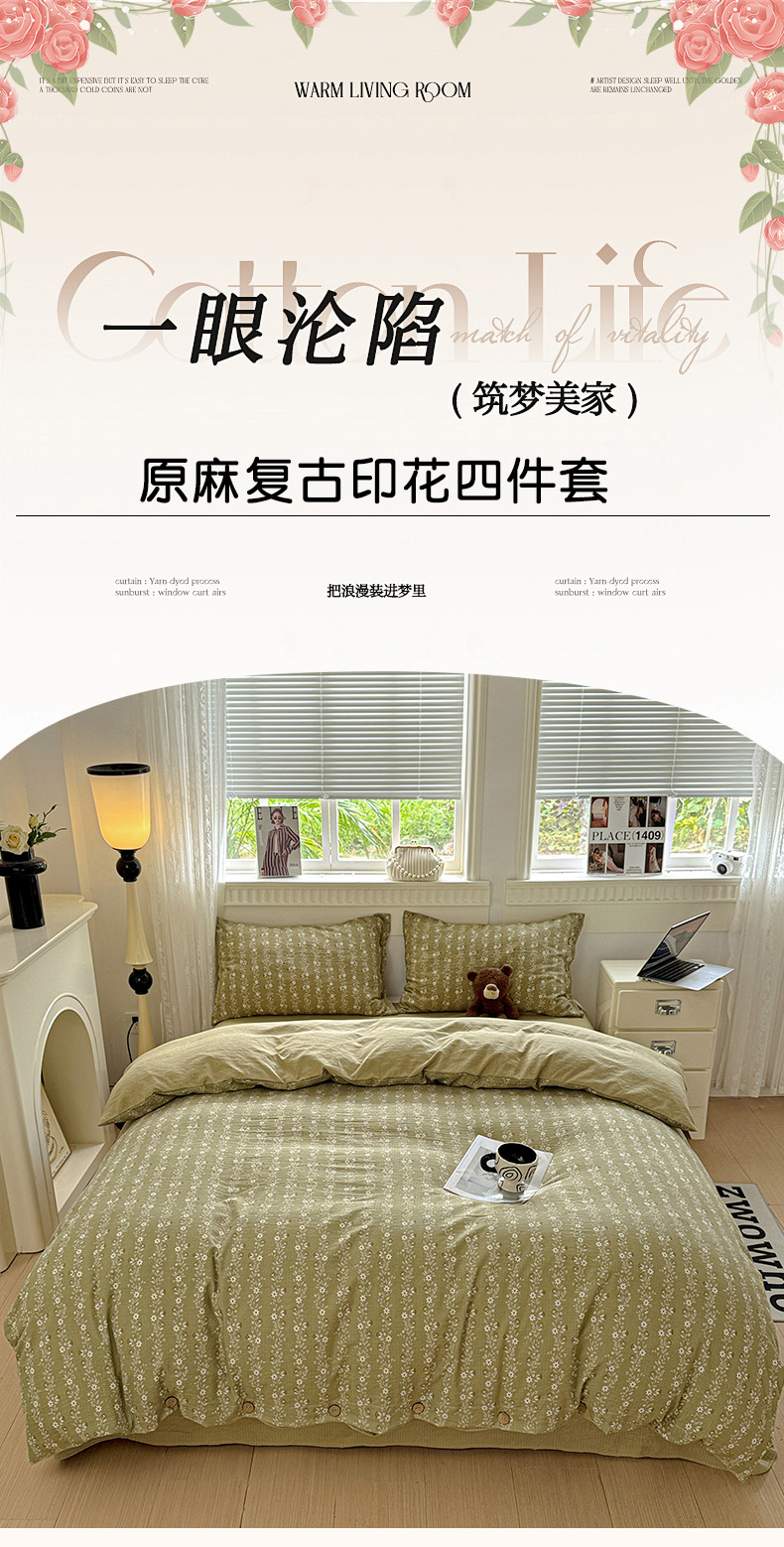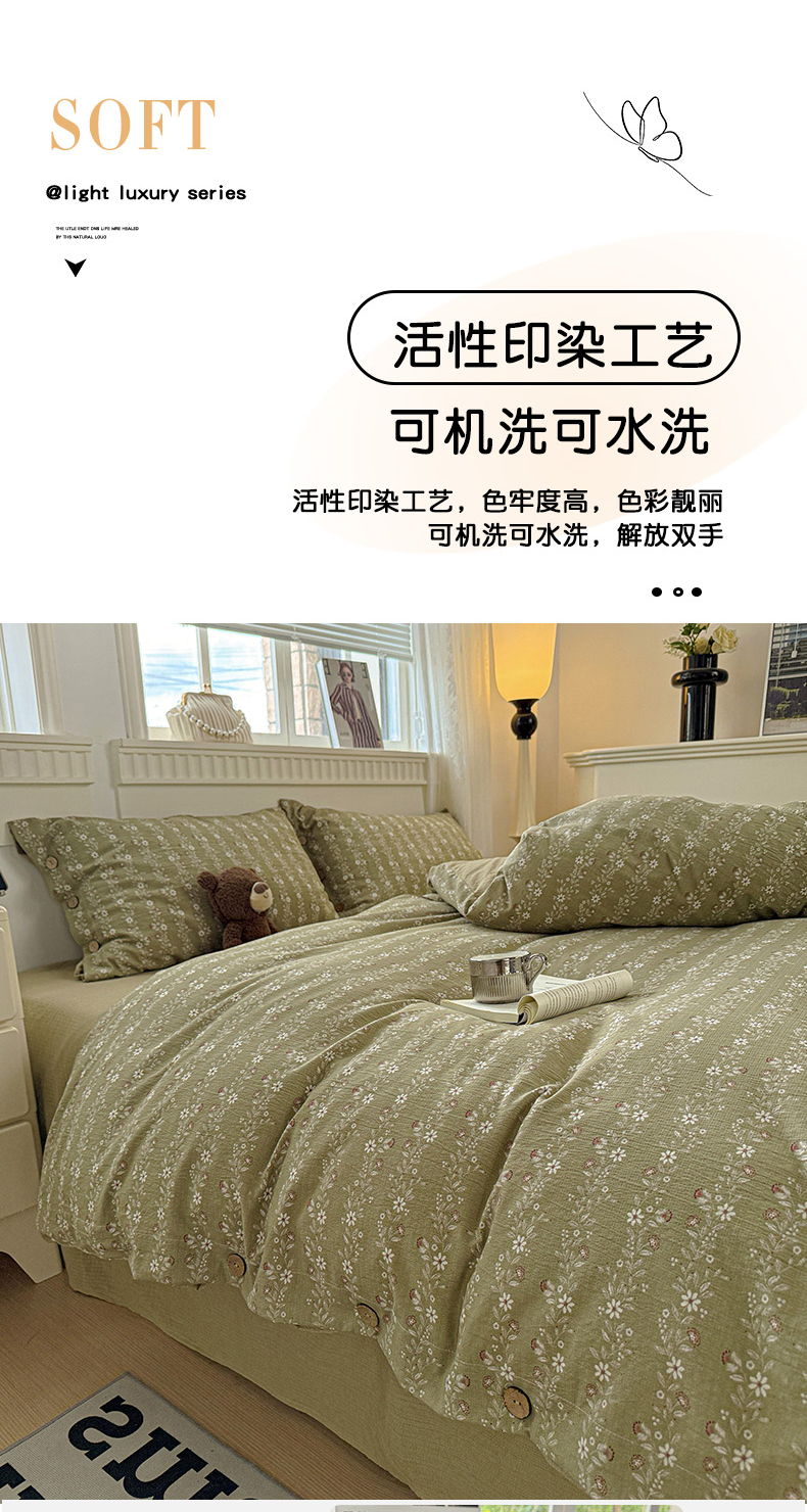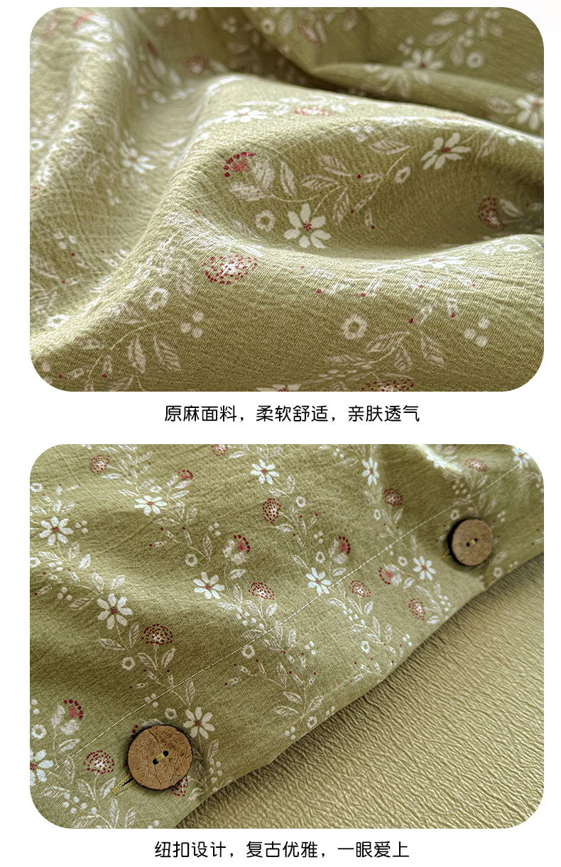 当前位置: 91家纺网 > 商品网购 > 床品套件 > 四件套 > 其它四件套 > 水墨江南 2025新款原麻复古印花纽扣款四件套 一抹香-绿