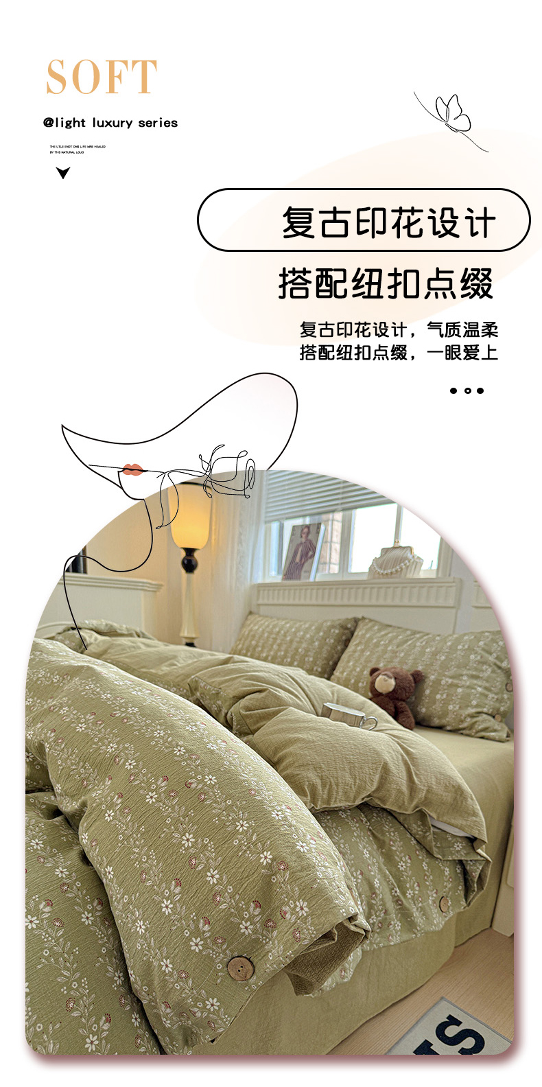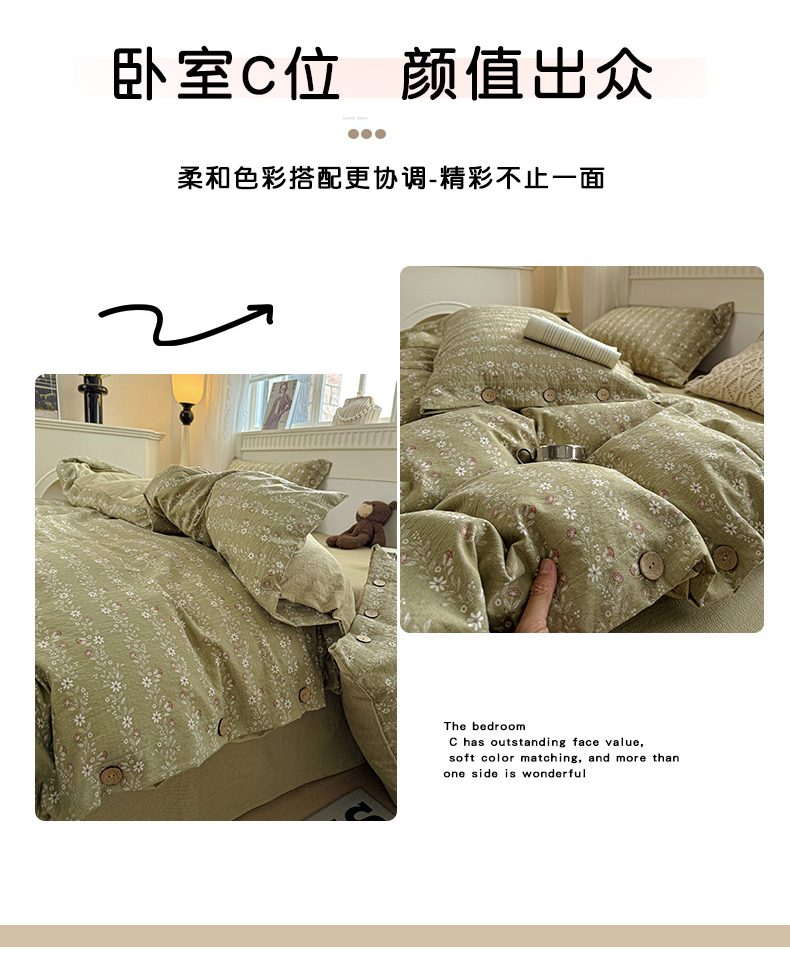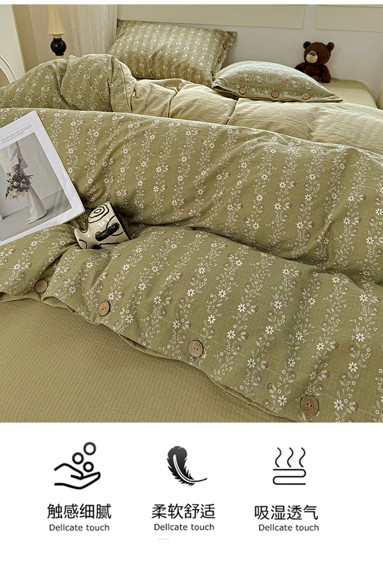 当前位置: 91家纺网 > 商品网购 > 床品套件 > 四件套 > 其它四件套 > 水墨江南 2025新款原麻复古印花纽扣款四件套 一抹香-绿