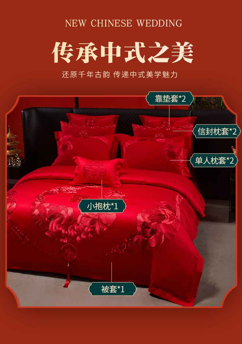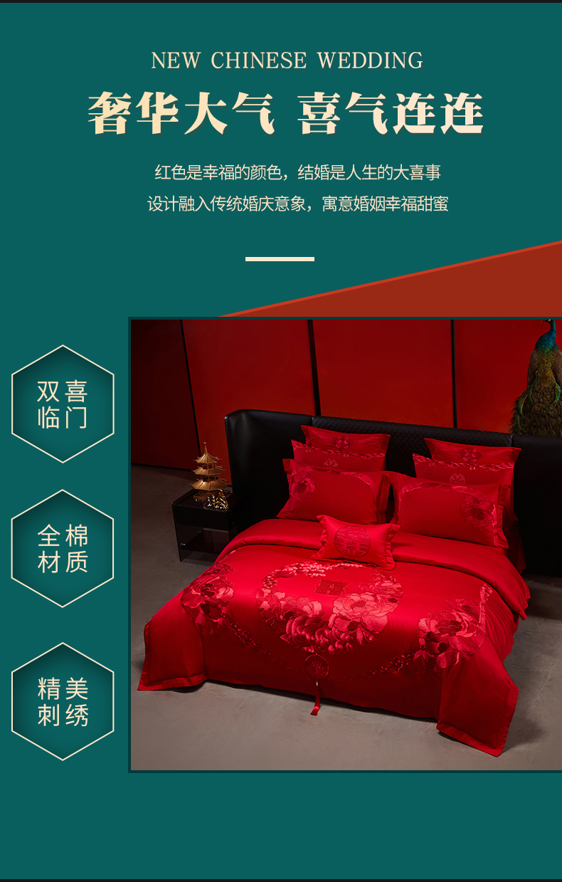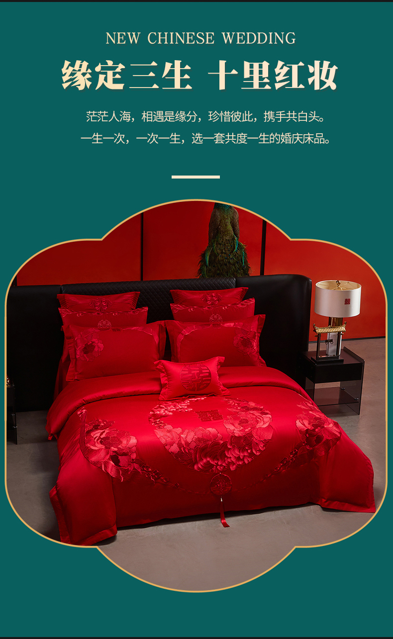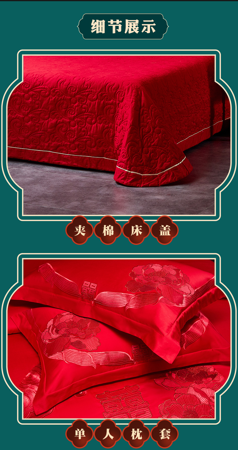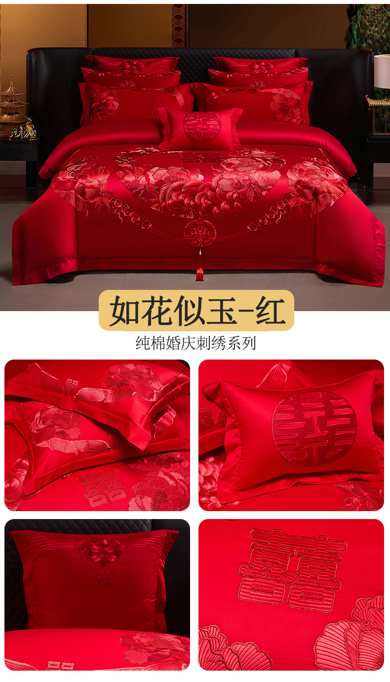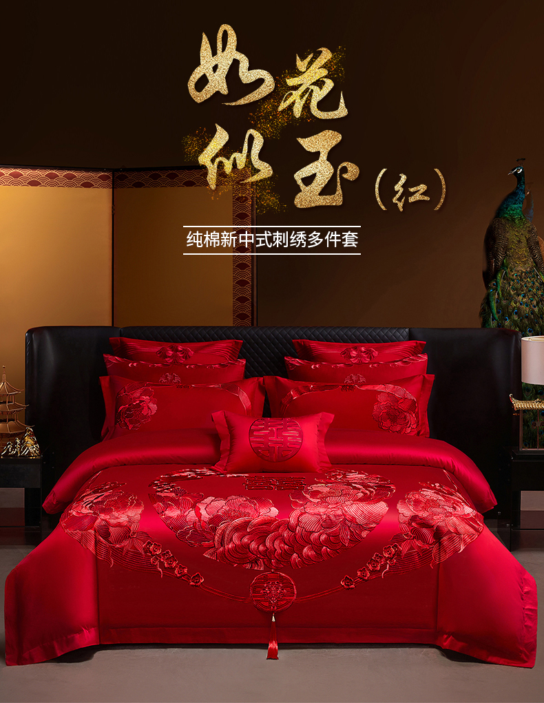 当前位置: 91家纺网 > 商品网购 > 床品套件 > 四件套 > 婚庆四件套 > 宏羽纺家纺 2025新款全棉100%全棉新中式婚庆多件套 全棉如花似玉-红