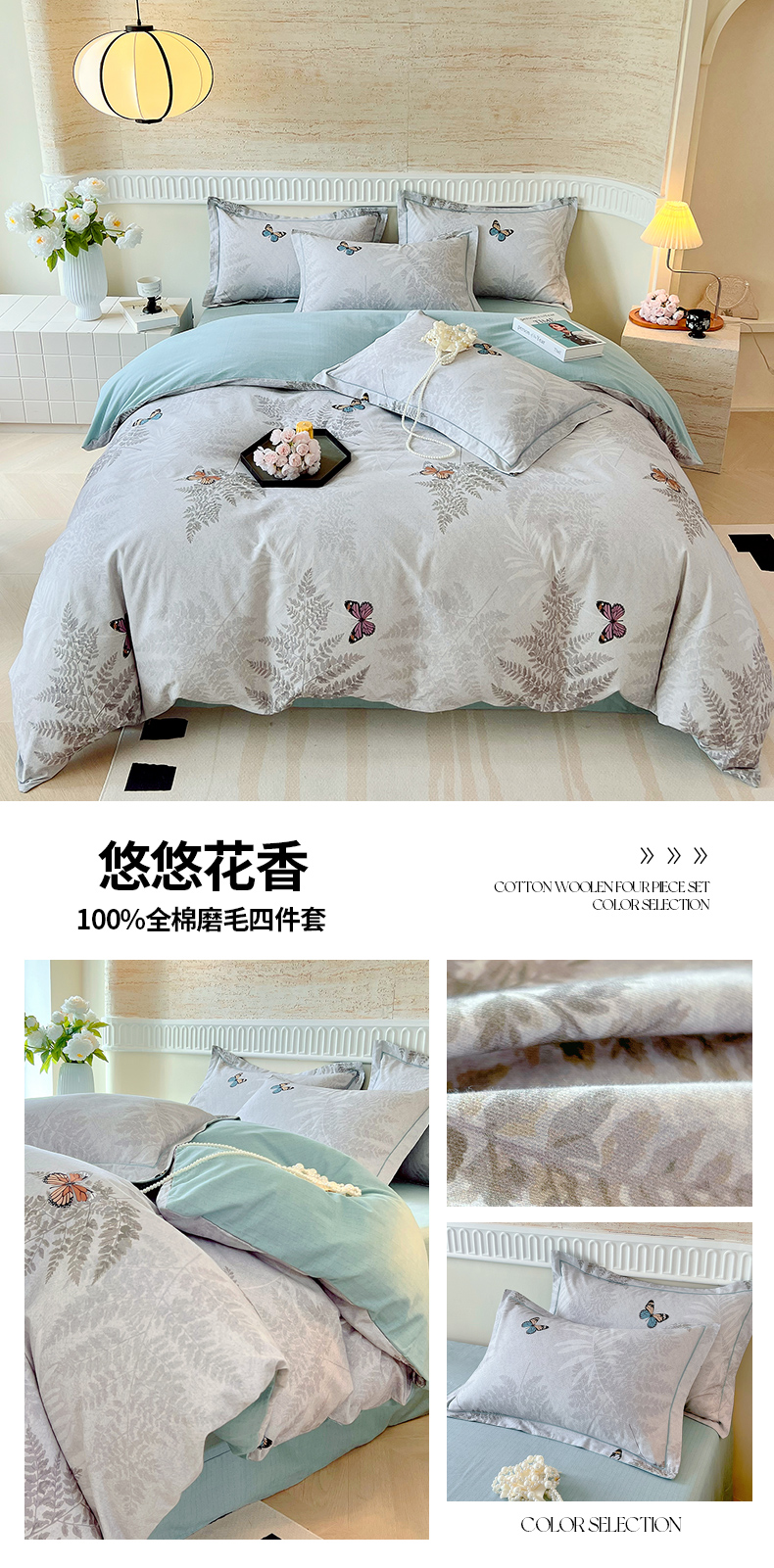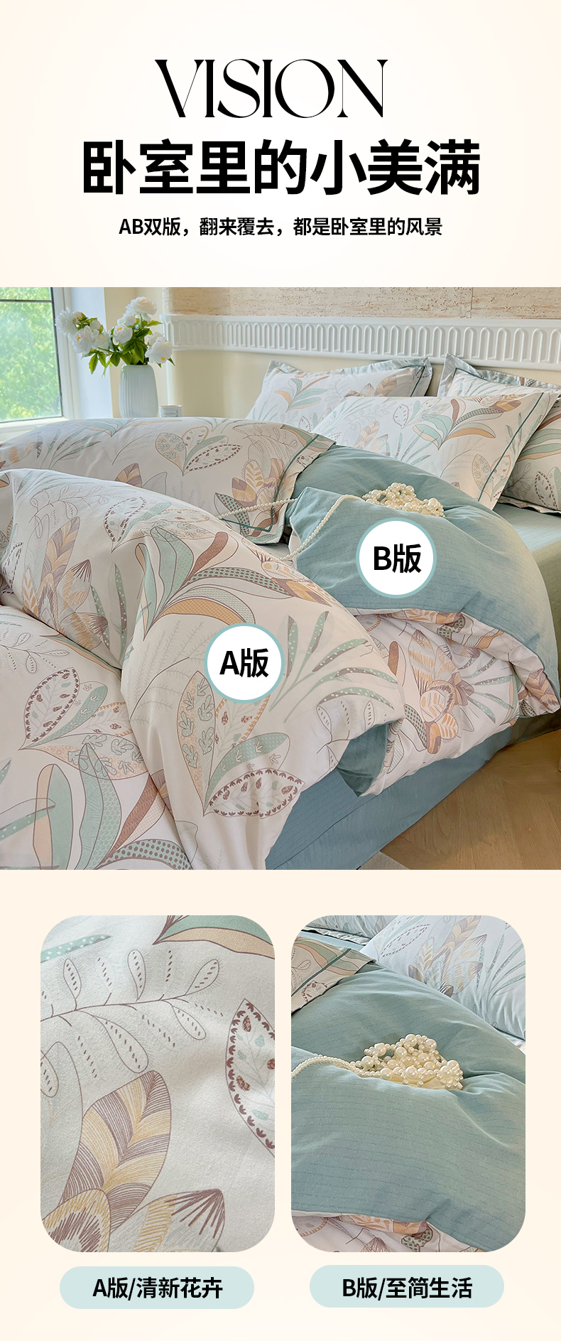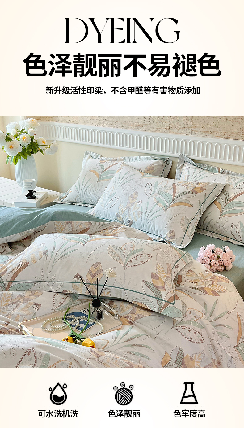 当前位置: 91家纺网 > 商品网购 > 床品套件 > 四件套 > 全棉普通四件套 > 梧桐树 2025新款全棉100%棉磨毛花卉简约系列四件套 麦吉 绿