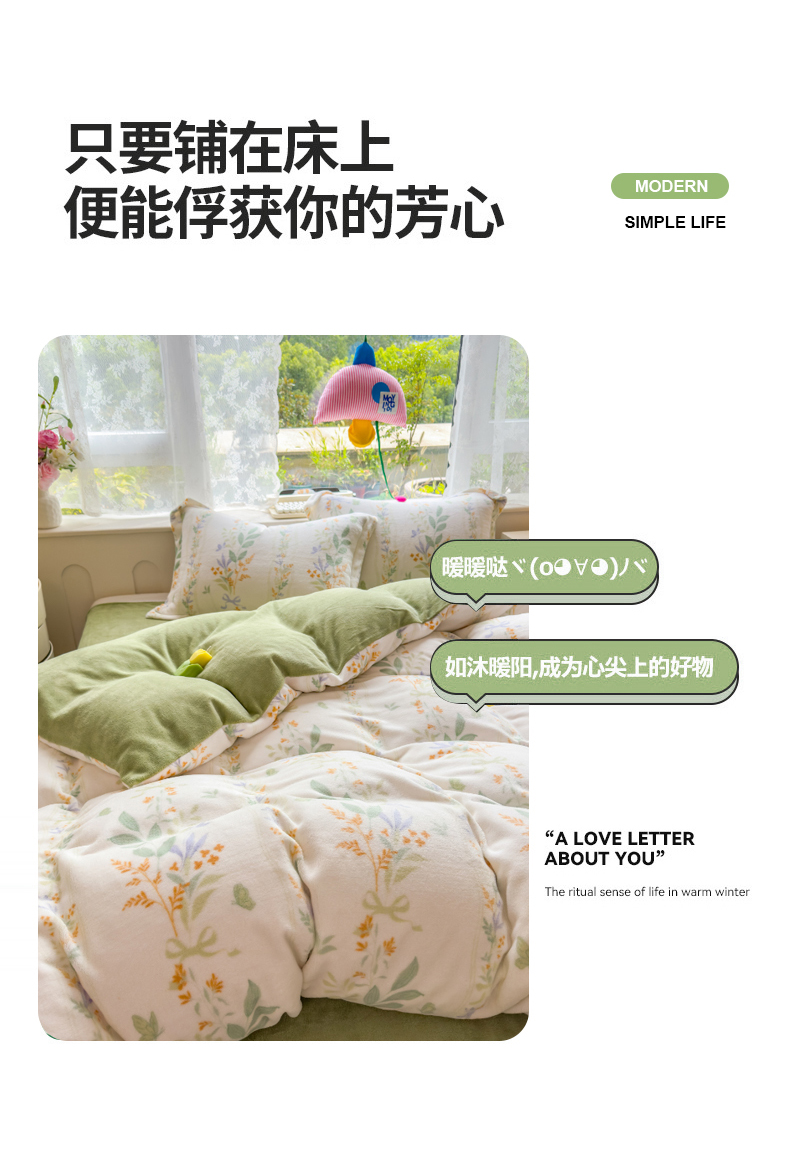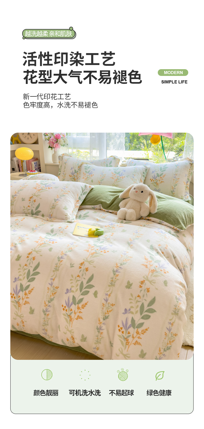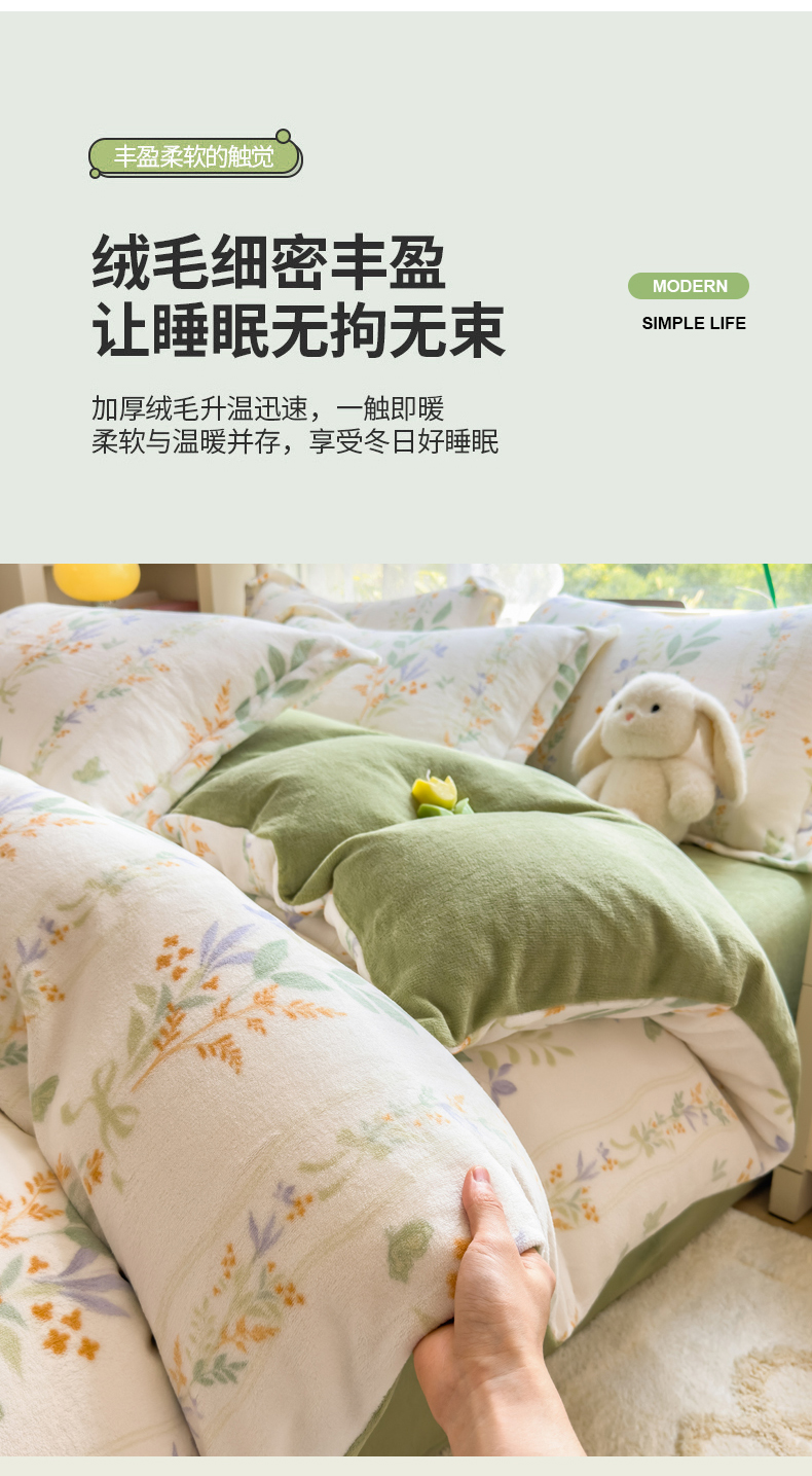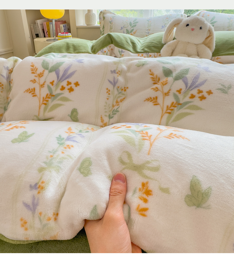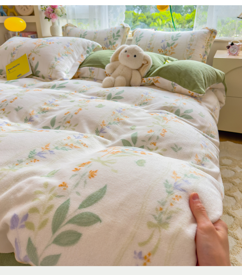 当前位置: 91家纺网 > 商品网购 > 床品套件 > 四件套 > 牛奶绒四件套 > 丝羽坊 2025新款200克加厚小清新牛奶绒床单款 床笠款四件套 被套 花间密语