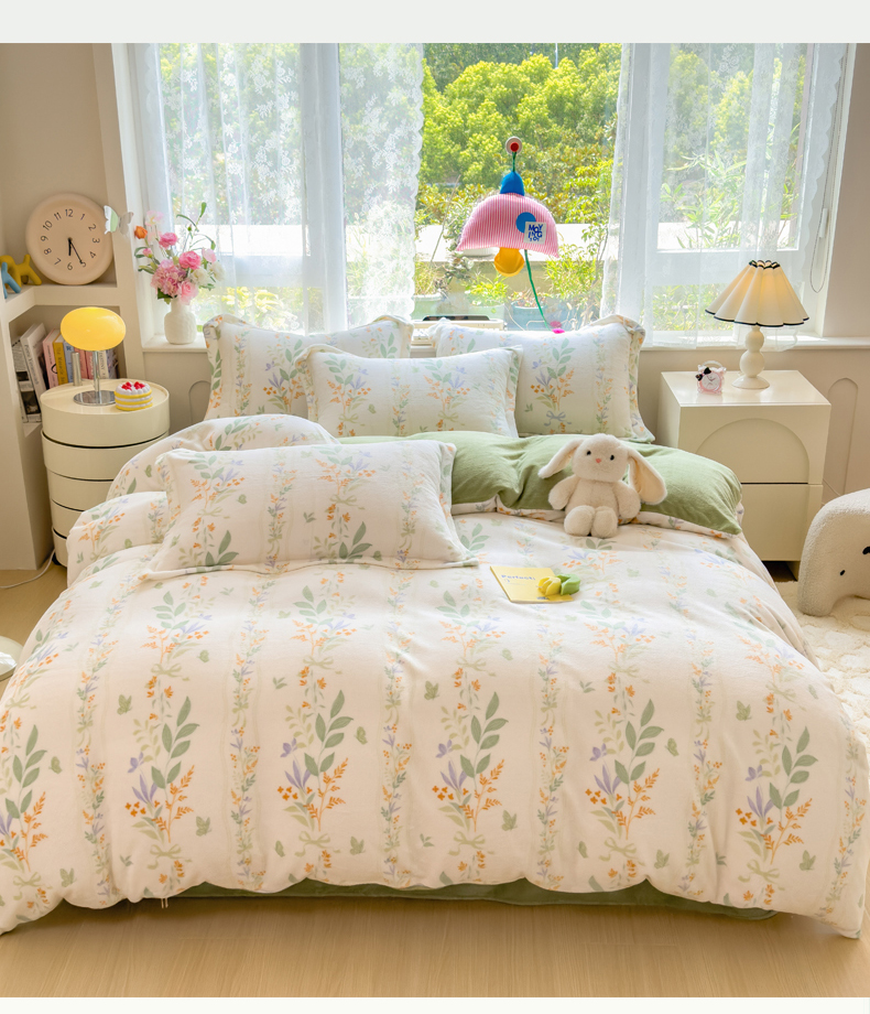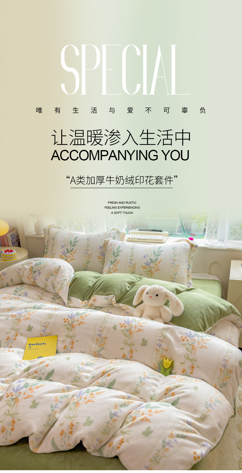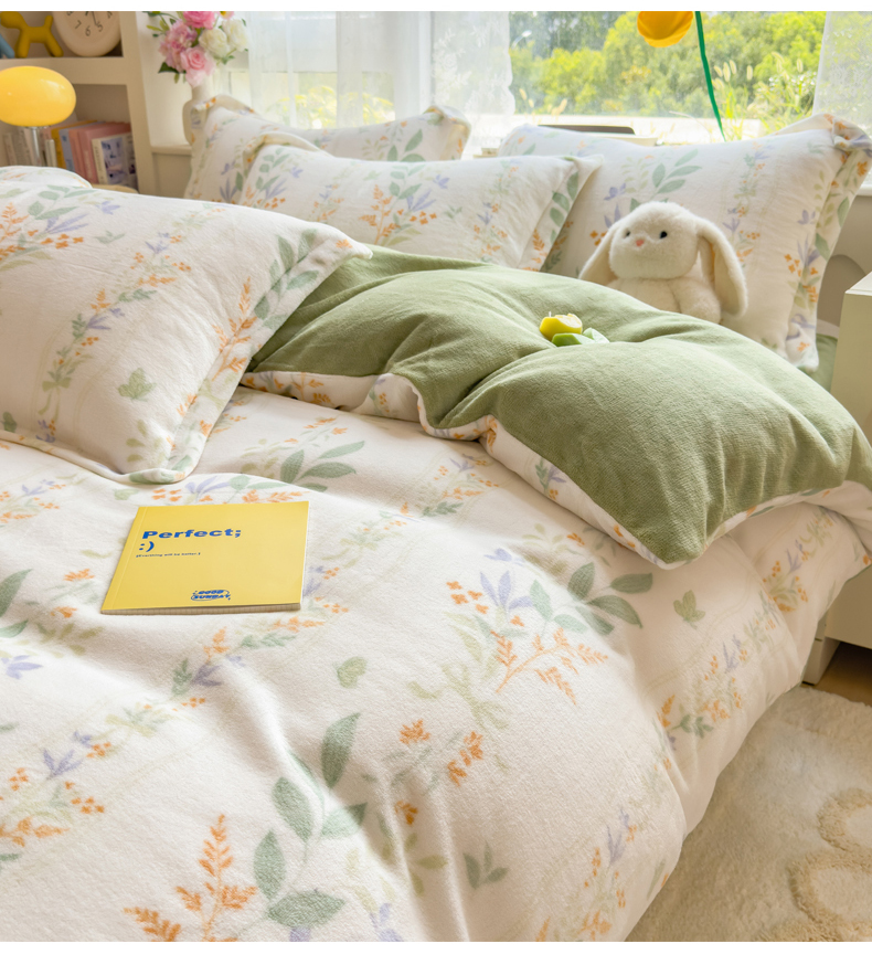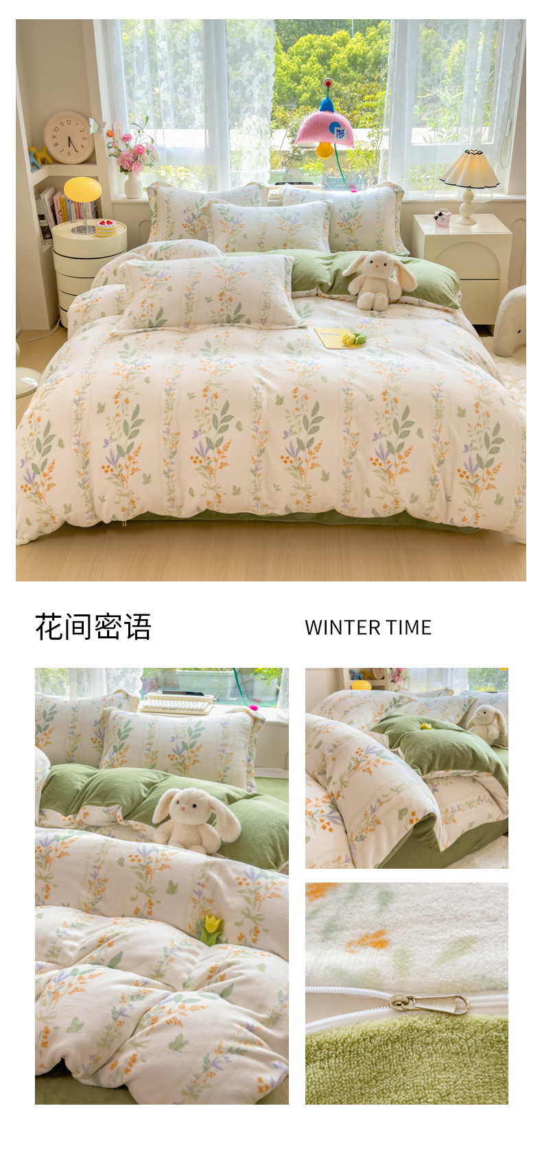 当前位置: 91家纺网 > 商品网购 > 床品套件 > 四件套 > 牛奶绒四件套 > 丝羽坊 2025新款200克加厚小清新牛奶绒床单款 床笠款四件套 被套 花间密语