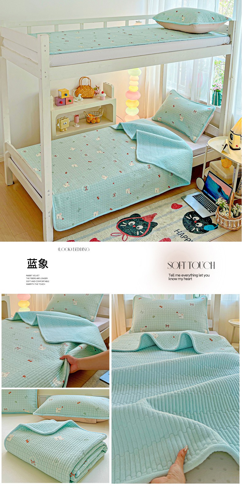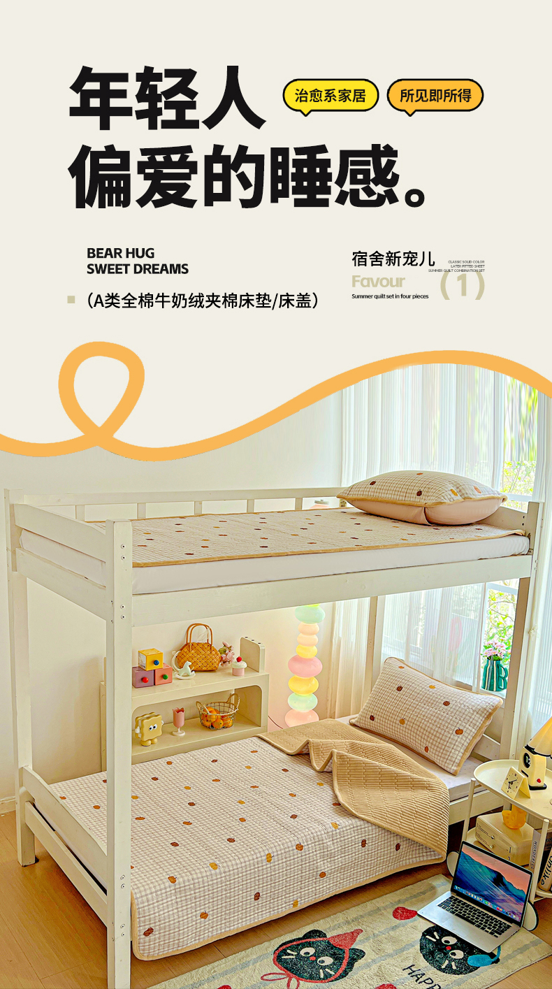 恒尚居 2025新款学生床盖纯棉牛奶绒 正反两用夹棉床单床垫-秋冬款 四季通用-系列二 甜心旺旺【A纯棉-B宝宝绒】