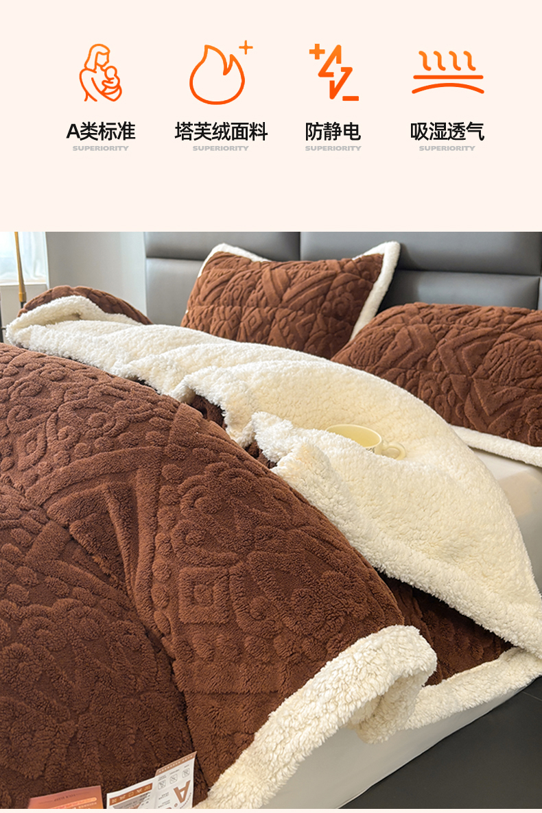 商品名称:雯豆家纺 2025秋冬新款塔芙绒毛毯被套两用毯子办公室居家披肩毯盖毯毯子-英伦 英伦-焦糖