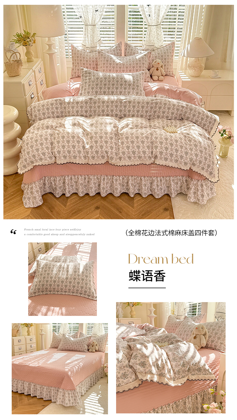 (总)韩约家纺 2026新款韩式花边古法棉感床盖四件套,知否,午后时光,漫花蝶舞,莓莓果,花影,甜心狗,初遇,萝莉,雨沫