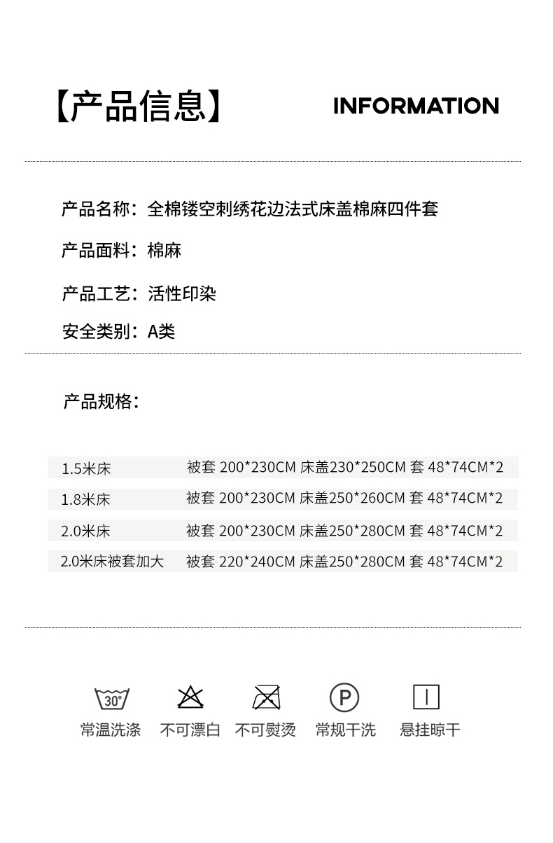商品名称:韩约家纺 2025新款全棉纯棉镂空双色刺绣花边法式床盖款棉麻四件套 若彩