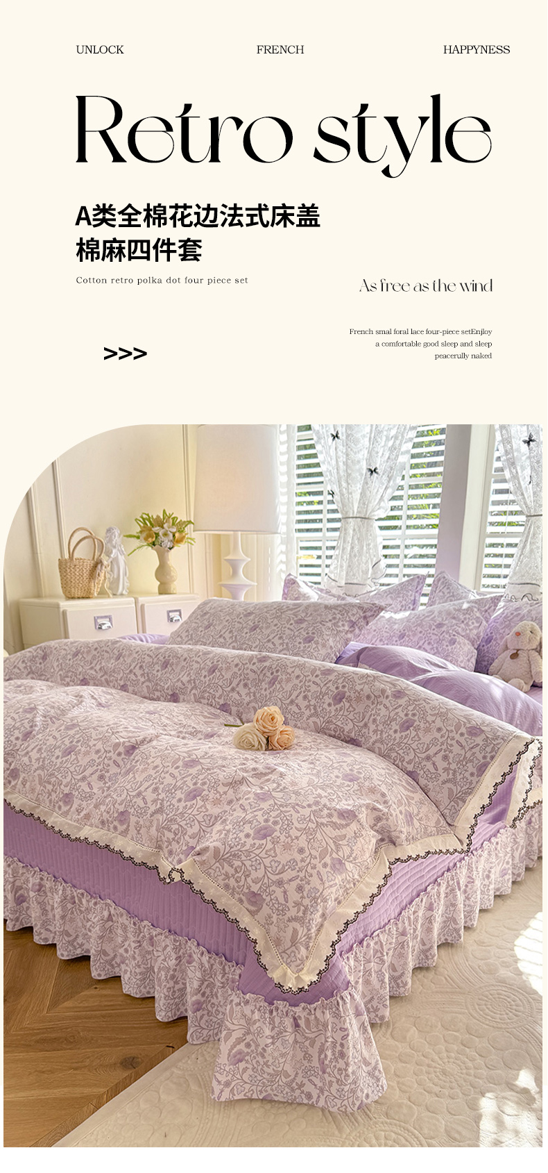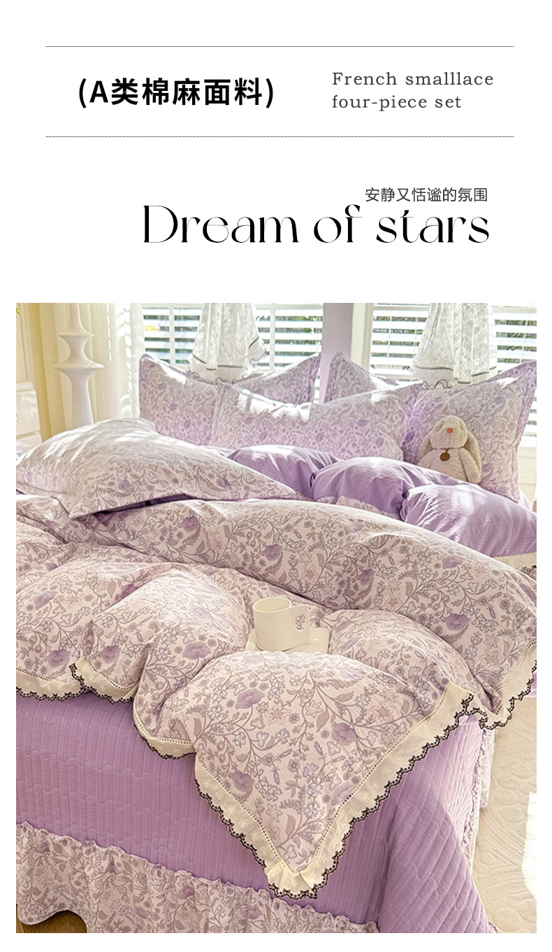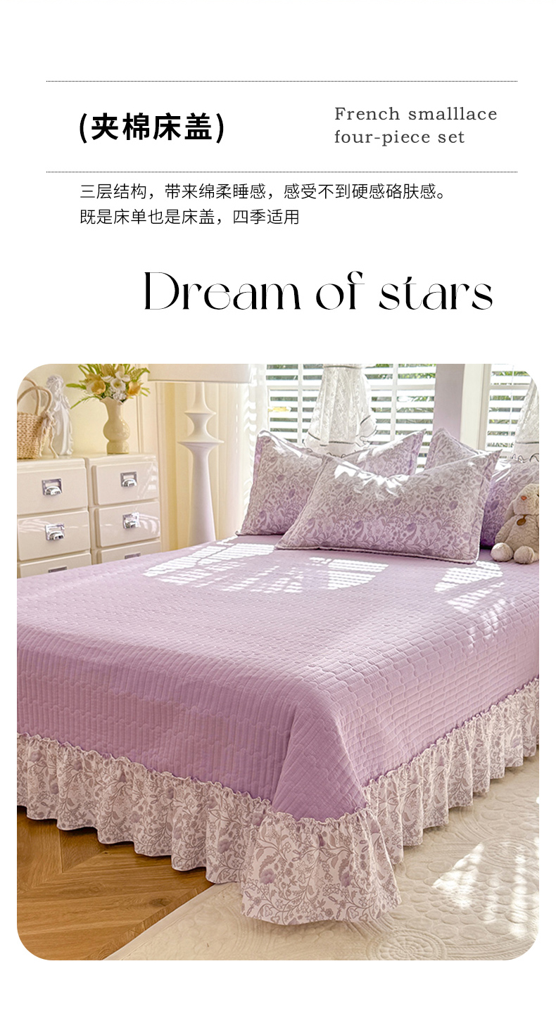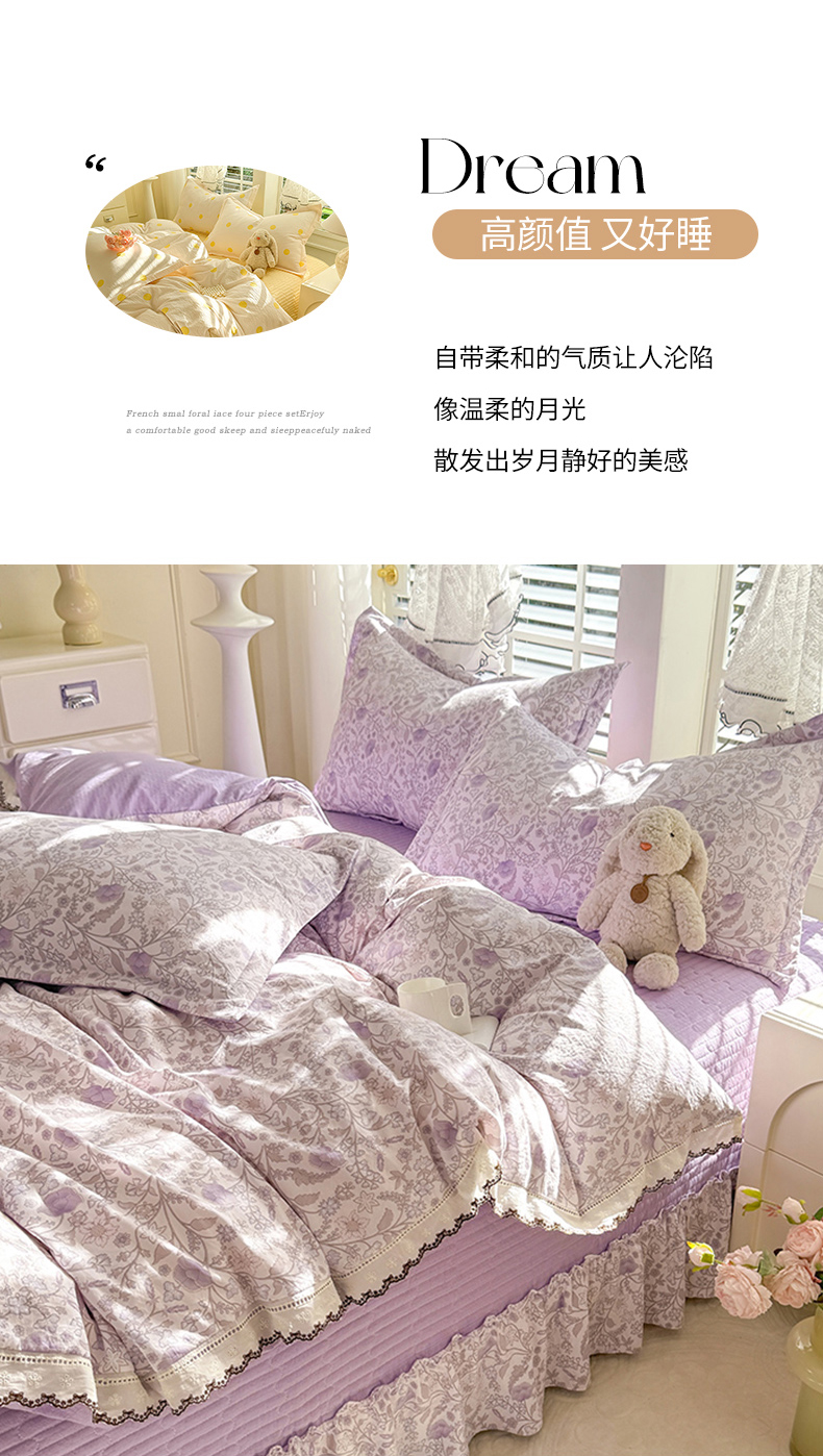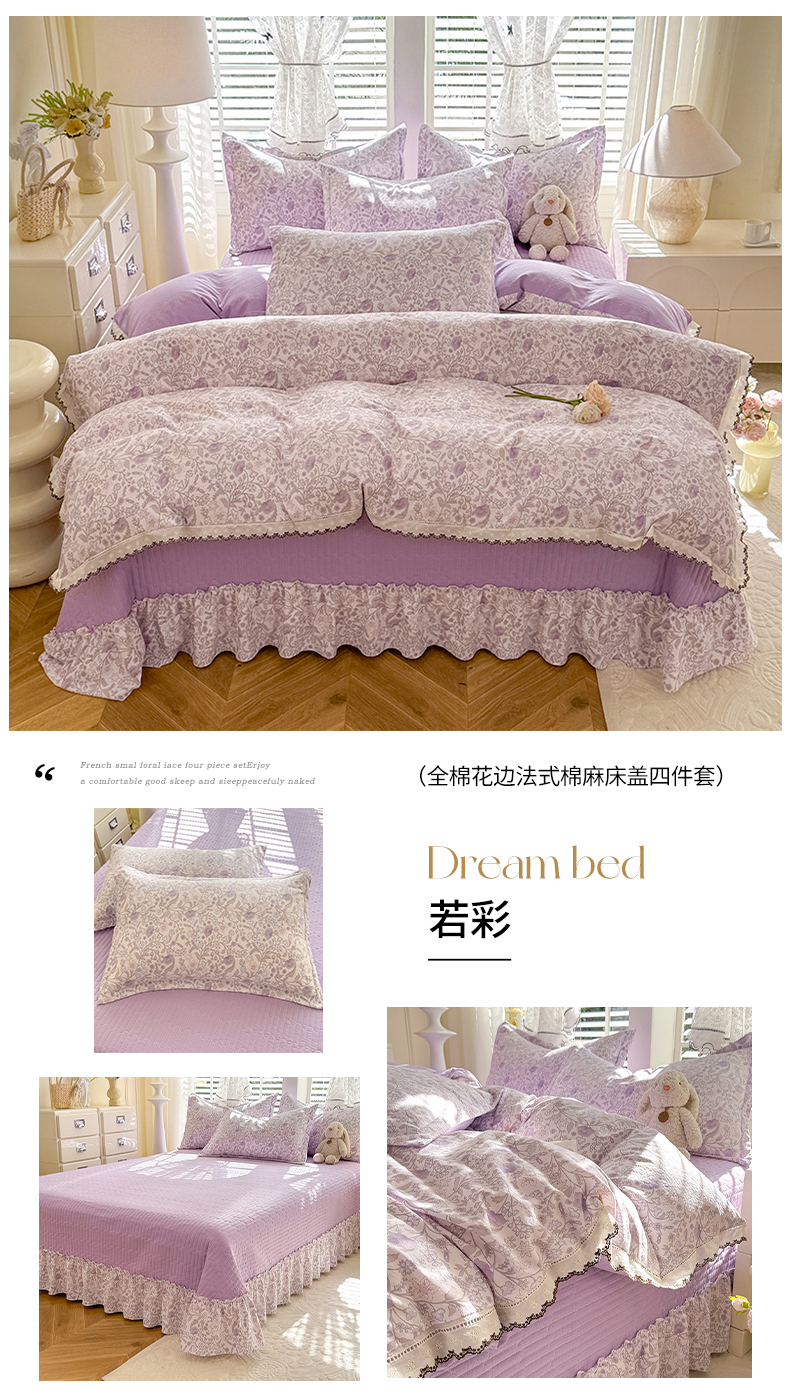 (总)韩约家纺 2026新款法式大花边古法棉感床盖四件套,春熙,宁静时光,紫妍,香兰,思绪,靓彩,艾米,轻颜