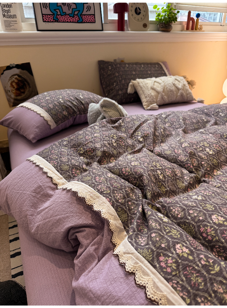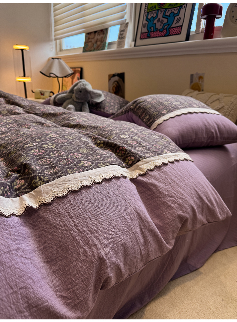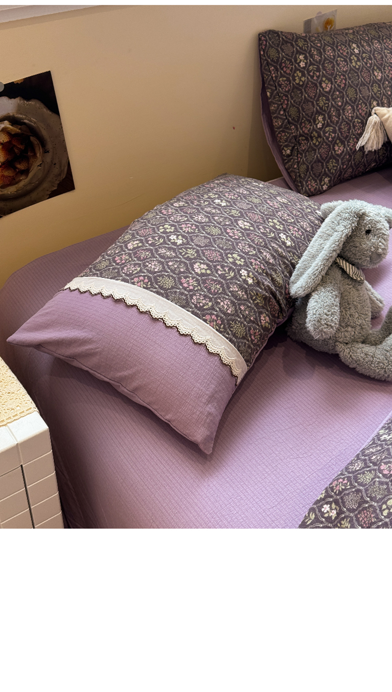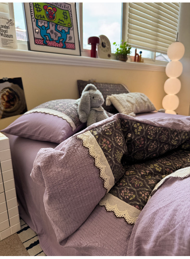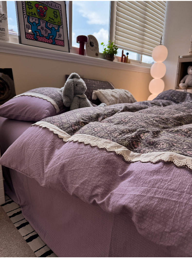 当前位置: 91家纺网 > 商品网购 > 床品套件 > 四件套 > 全棉普通四件套 > 水墨江南 2025新款云感皱皱纱全棉花边四件套-场景二 花边款-秘境