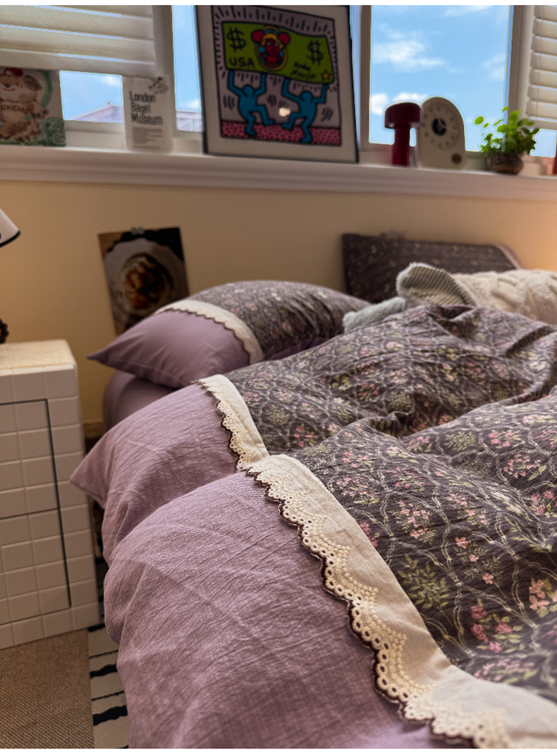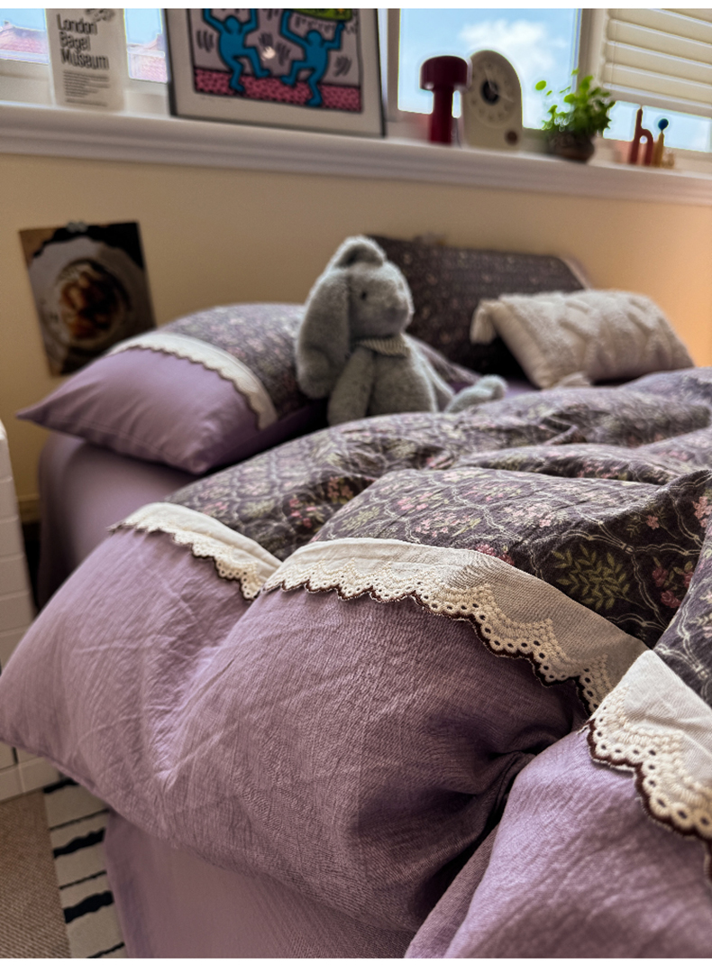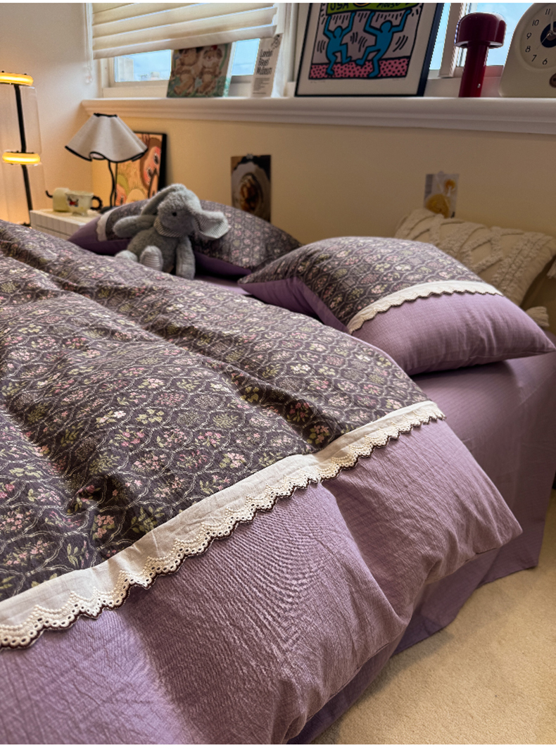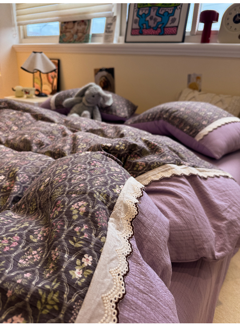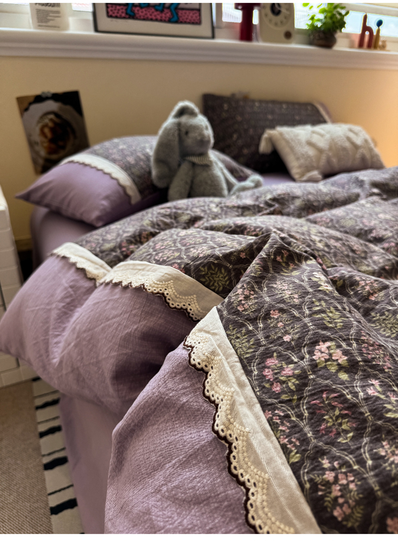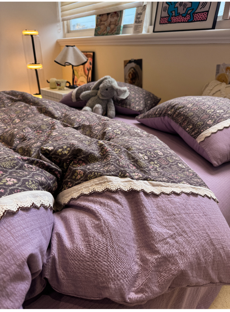 当前位置: 91家纺网 > 商品网购 > 床品套件 > 四件套 > 全棉普通四件套 > 水墨江南 2025新款云感皱皱纱全棉花边四件套-场景二 花边款-秘境