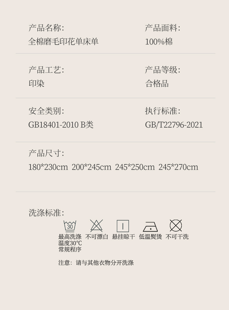 180x230cm单床单