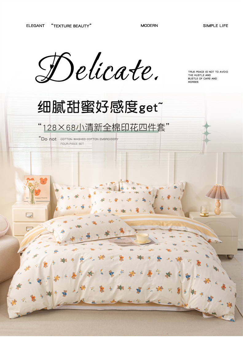 当前位置: 91家纺网 > 商品网购 > 床品套件 > 四件套 > 全棉普通四件套 > 红淳家纺 2025新款小清新春款12868全棉印花四件套 小幸运