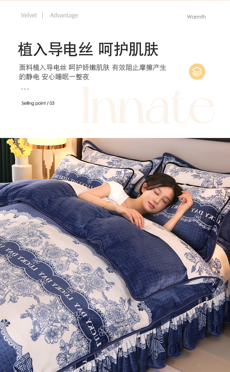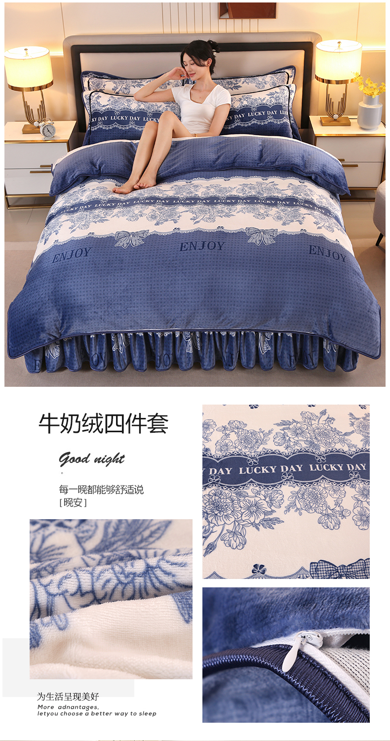 代芙 2022新款加厚磨毛双边床裙四件套 幽兰静美,幽兰静美
