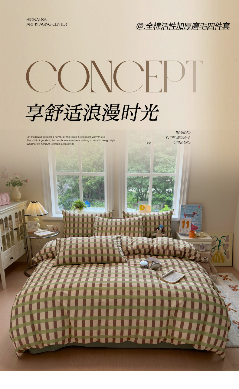 当前位置: 91家纺网 > 商品网购 > 床品套件 > 四件套 > 普通磨毛四件套 > 如意朵 2025新款全棉纯棉磨毛四件套 艾格-绿