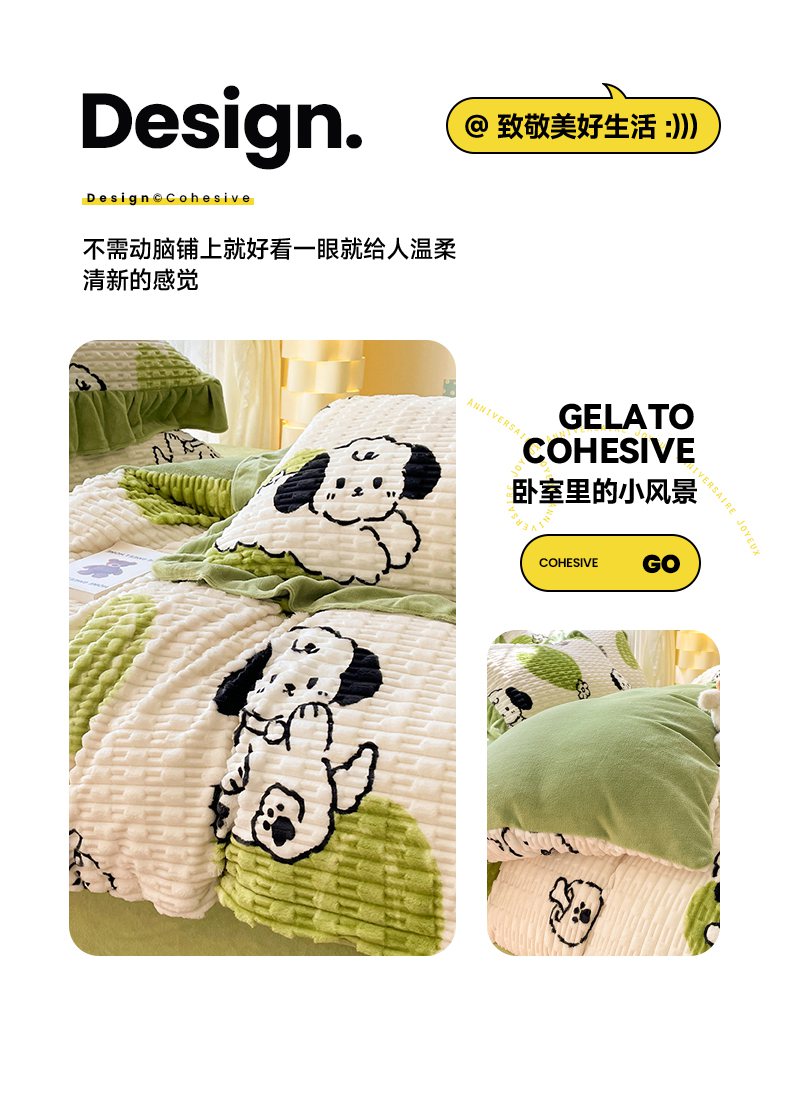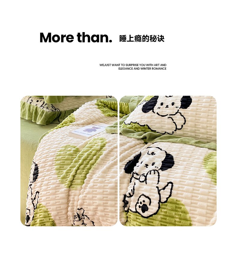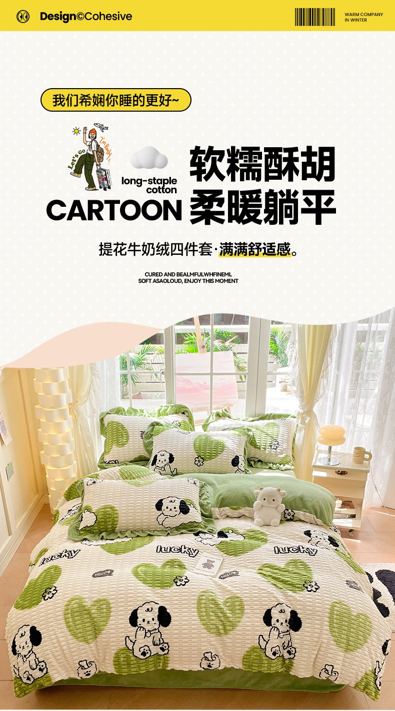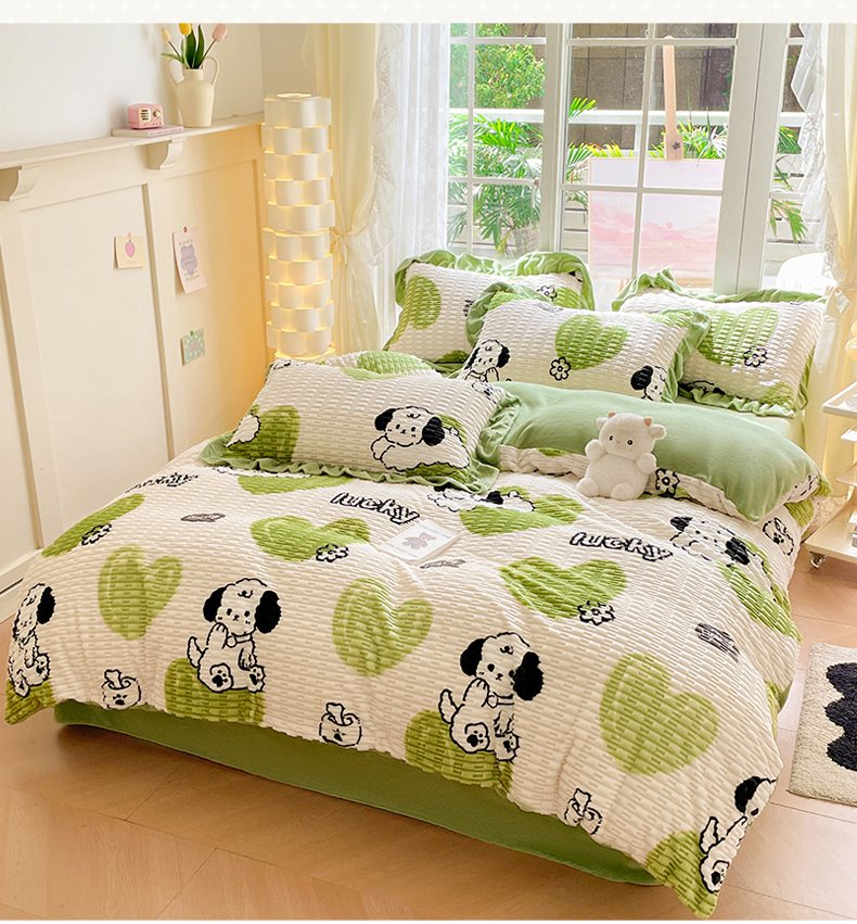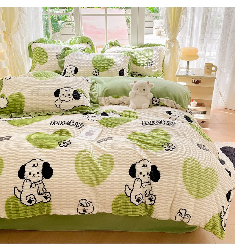 商品名称:摩妮卡 2025新款提花豆豆绒卡通印花牛奶绒四件套 萌趣狗