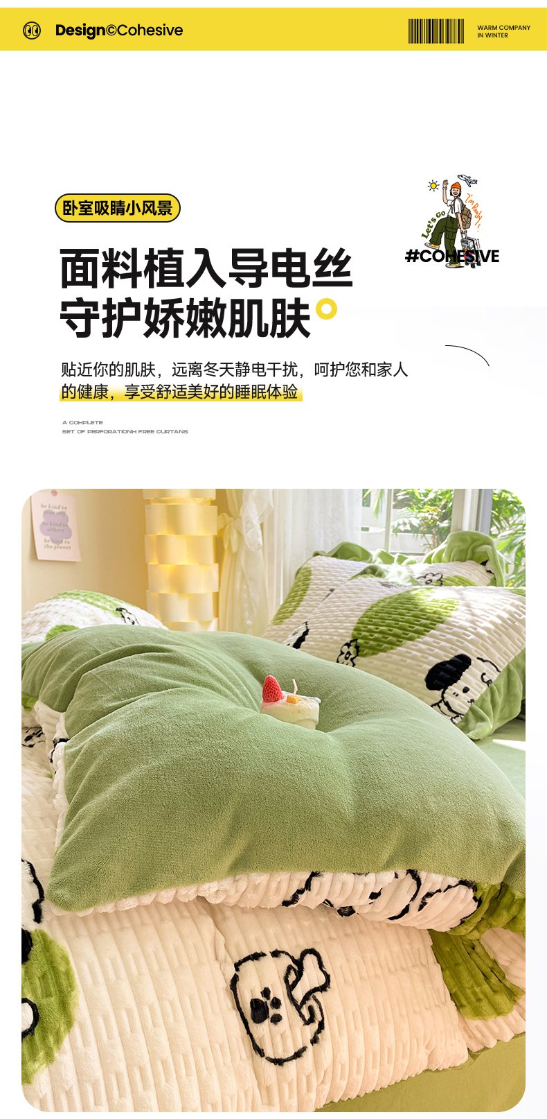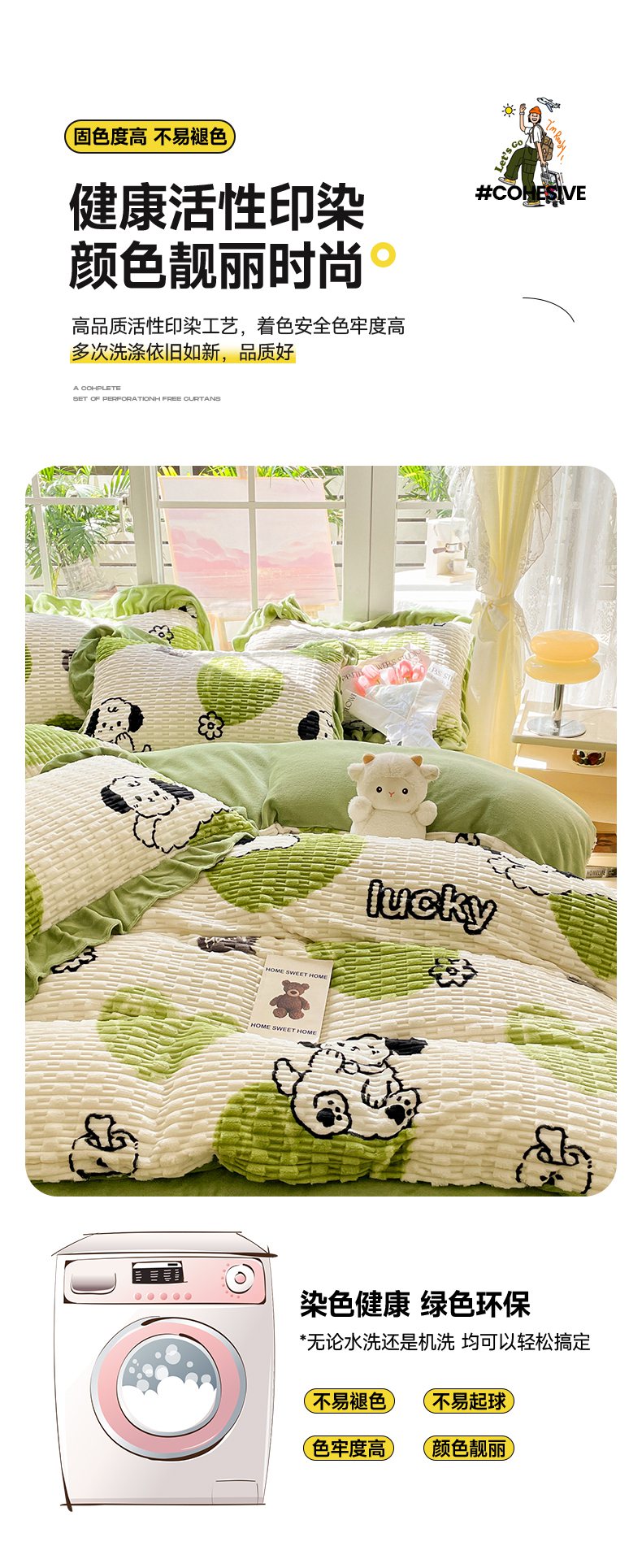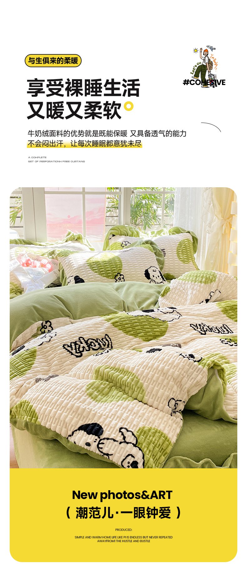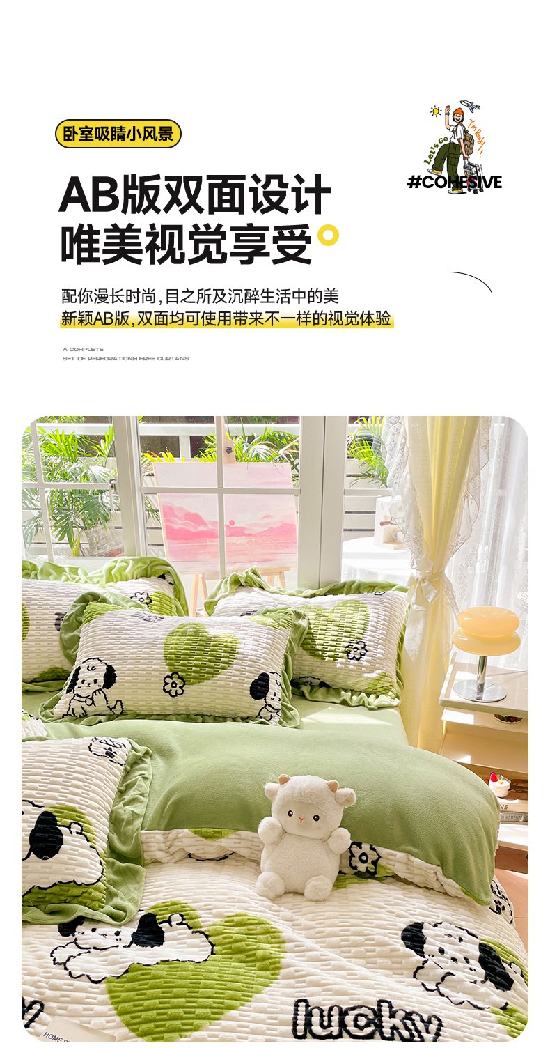 商品名称:摩妮卡 2025新款提花豆豆绒卡通印花牛奶绒四件套 萌趣狗