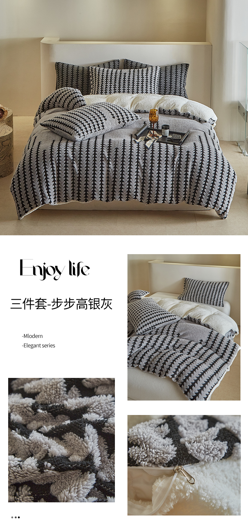 商品名称:温宁家纺 2025新款步步高被套毯毛毯盖毯三件套单被套可配枕套 三件套-步步高银灰