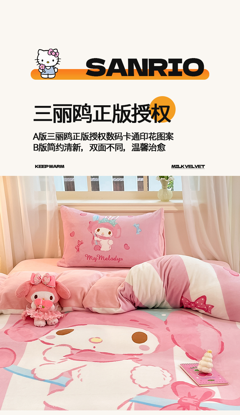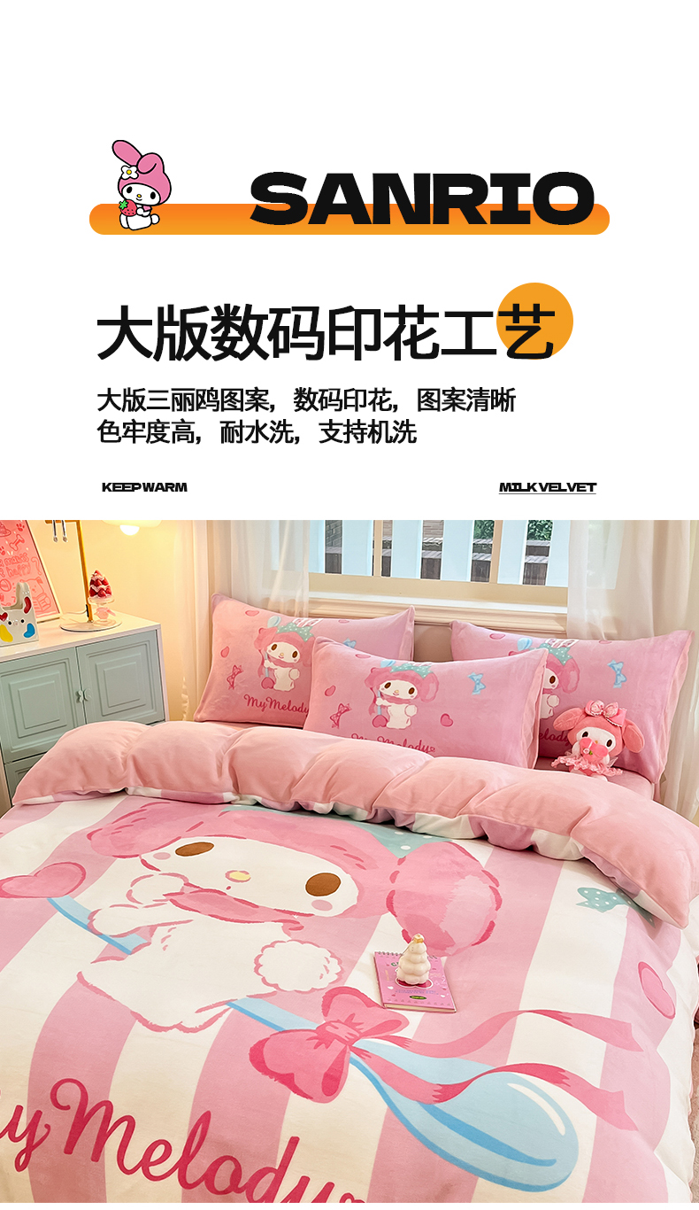 当前位置: 91家纺网 > 商品网购 > 床品套件 > 四件套 > 牛奶绒四件套 > 金爱家 2025新款正版三丽鸥授权大版卡通平网数码印花加厚高克重牛奶绒系列四件套-第一批 绒大版-R魔法美乐蒂