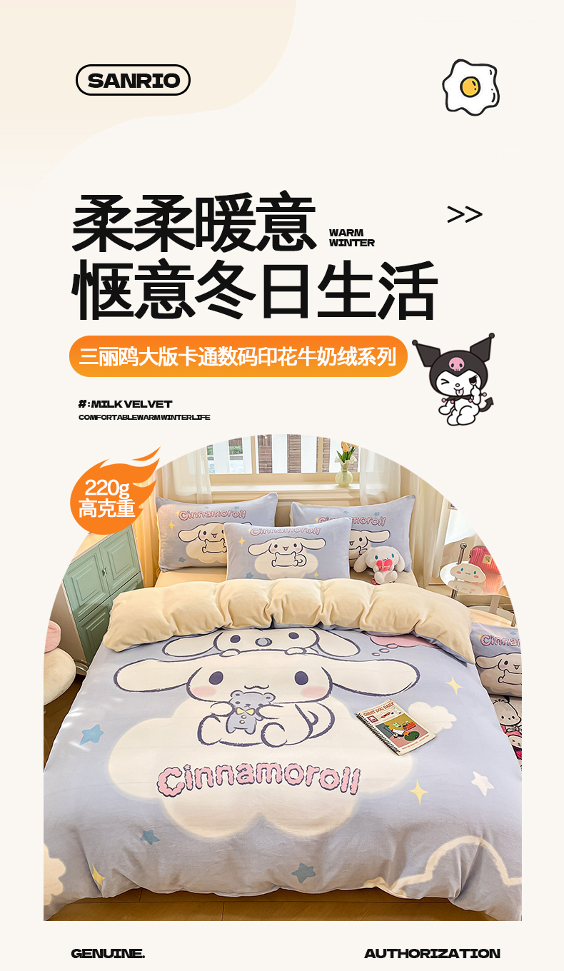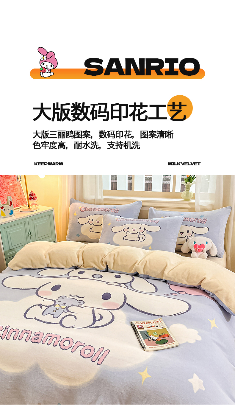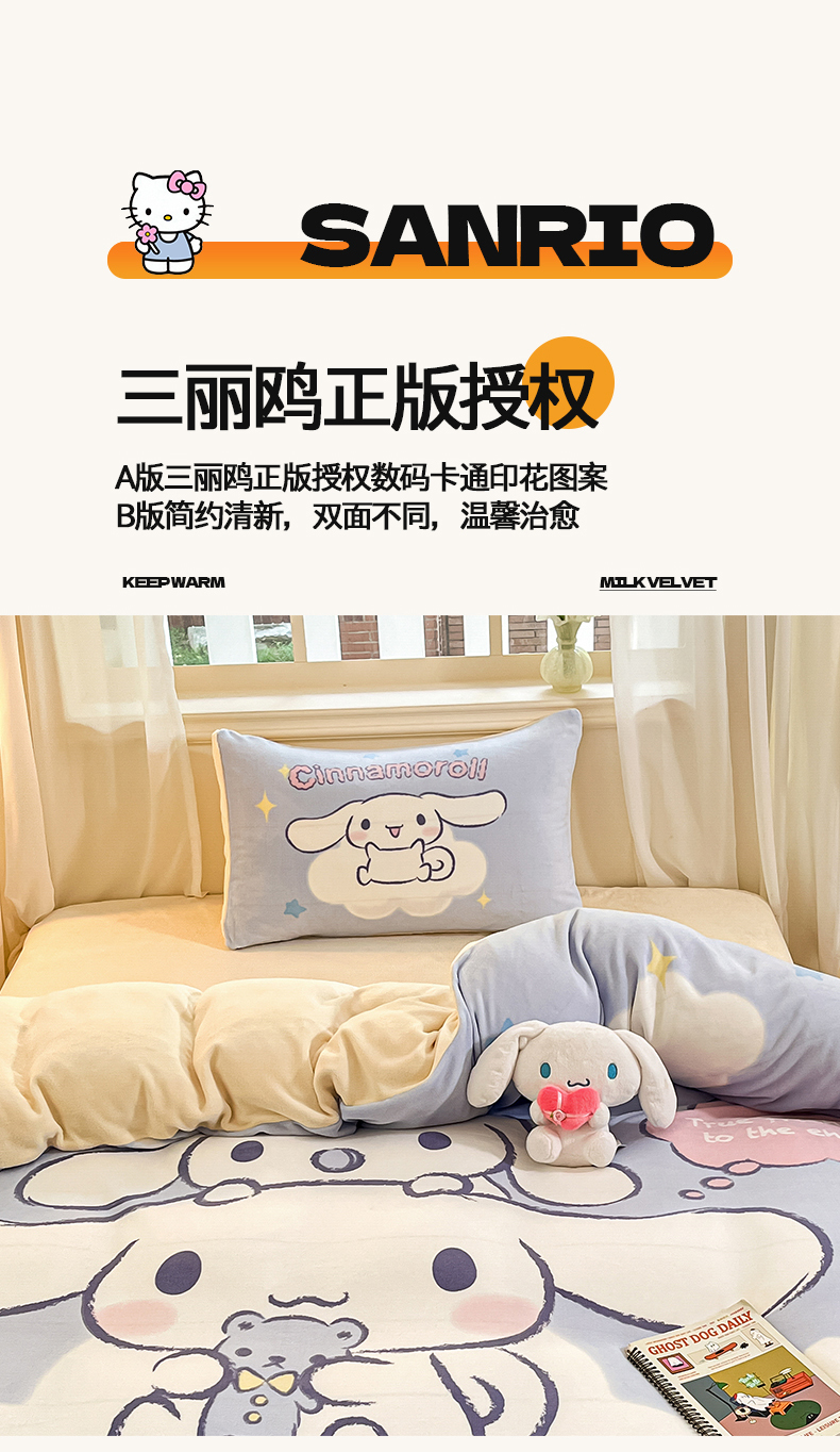 当前位置: 91家纺网 > 商品网购 > 床品套件 > 四件套 > 牛奶绒四件套 > 金爱家 2025新款正版三丽鸥授权大版卡通平网数码印花加厚高克重牛奶绒系列四件套-第一批 绒大版-R云朵玩偶大耳狗