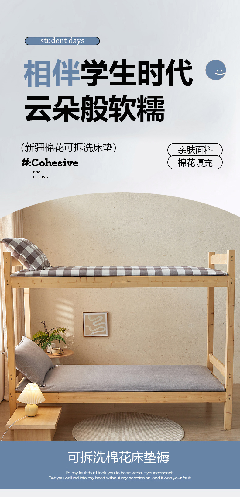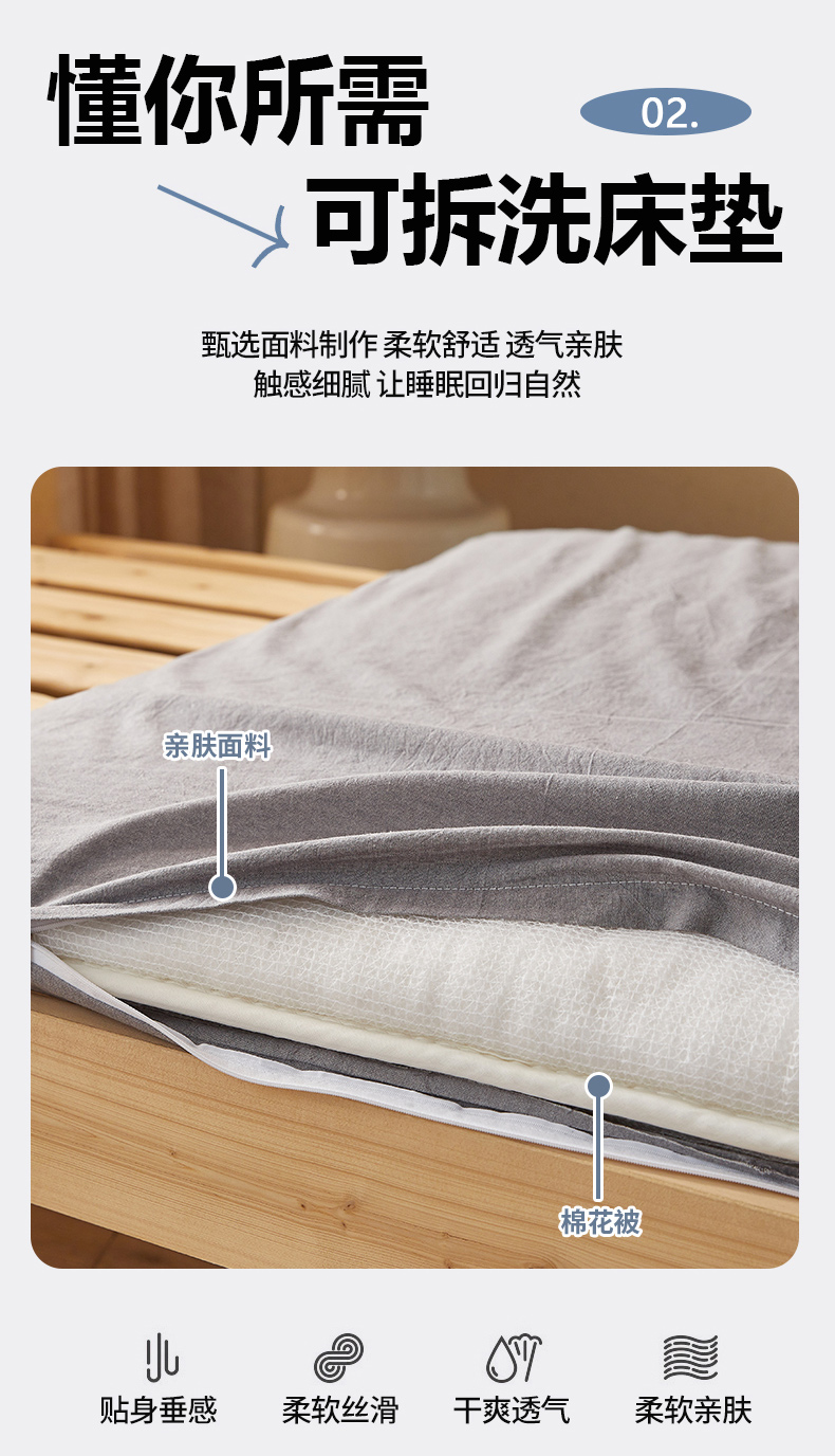 商品名称:悠米悠家 2025新款新疆棉花学生款可拆洗床垫 灰色