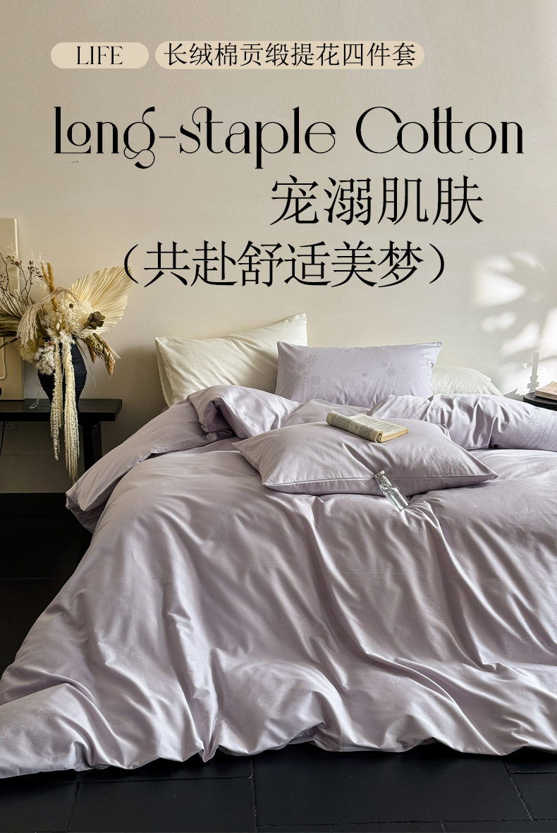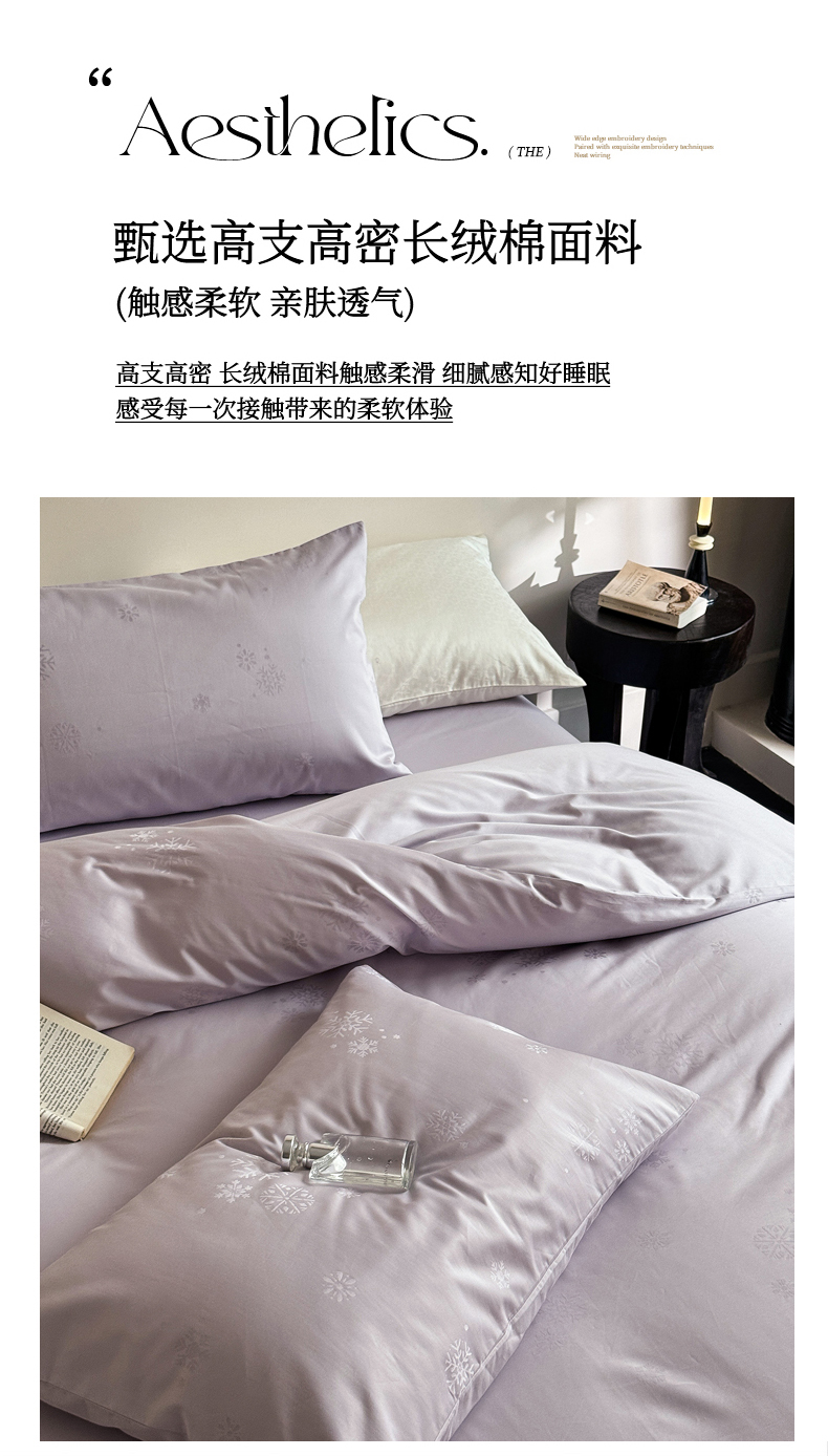 当前位置: 91家纺网 > 商品网购 > 床品套件 > 四件套 > 贡缎全棉四件套 > ONE TWO ONE 1212025新款100S长绒棉纯棉活性印染提花四件套雪落绒花系列风格二【为了各位老板们都有利润空间,平台控价券后不得低于228/318/338元,感谢您的配合与支持!】 雪落