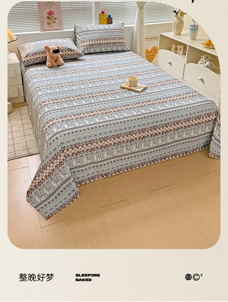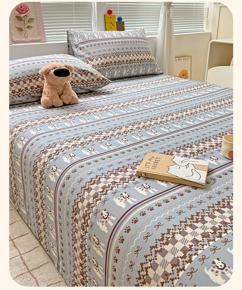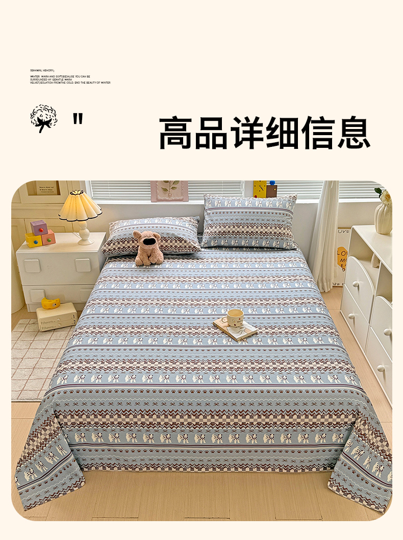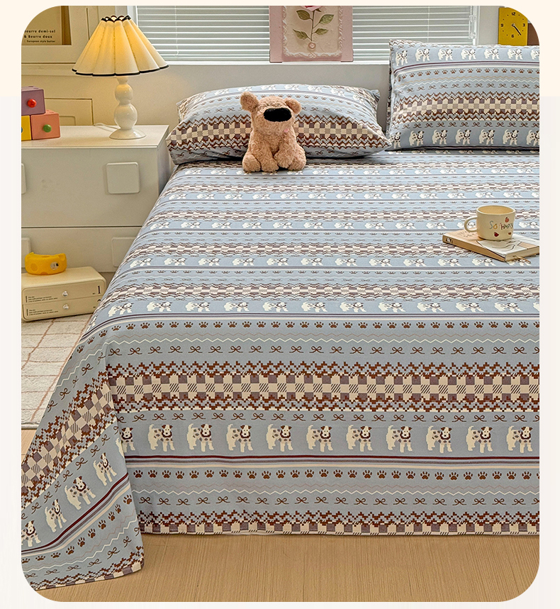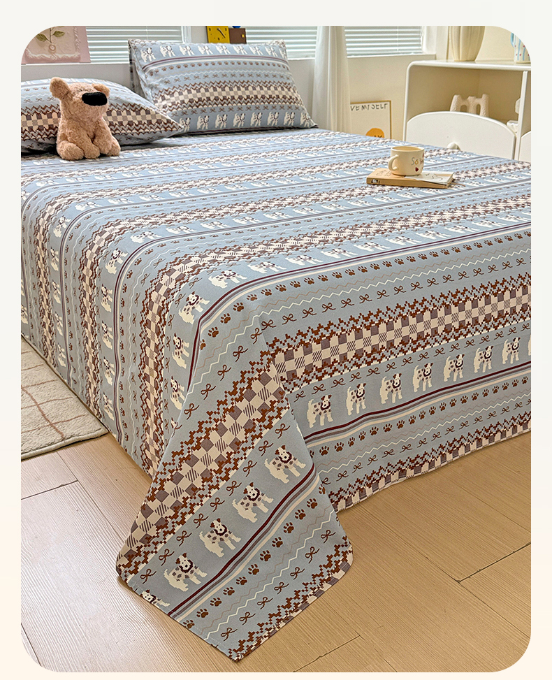 • 91家纺网 家纺一手货源 找家纺 名兮家居 2025秋冬新款100%全棉纯棉磨毛单床单 床单单件 蝴蝶结小狗-蓝