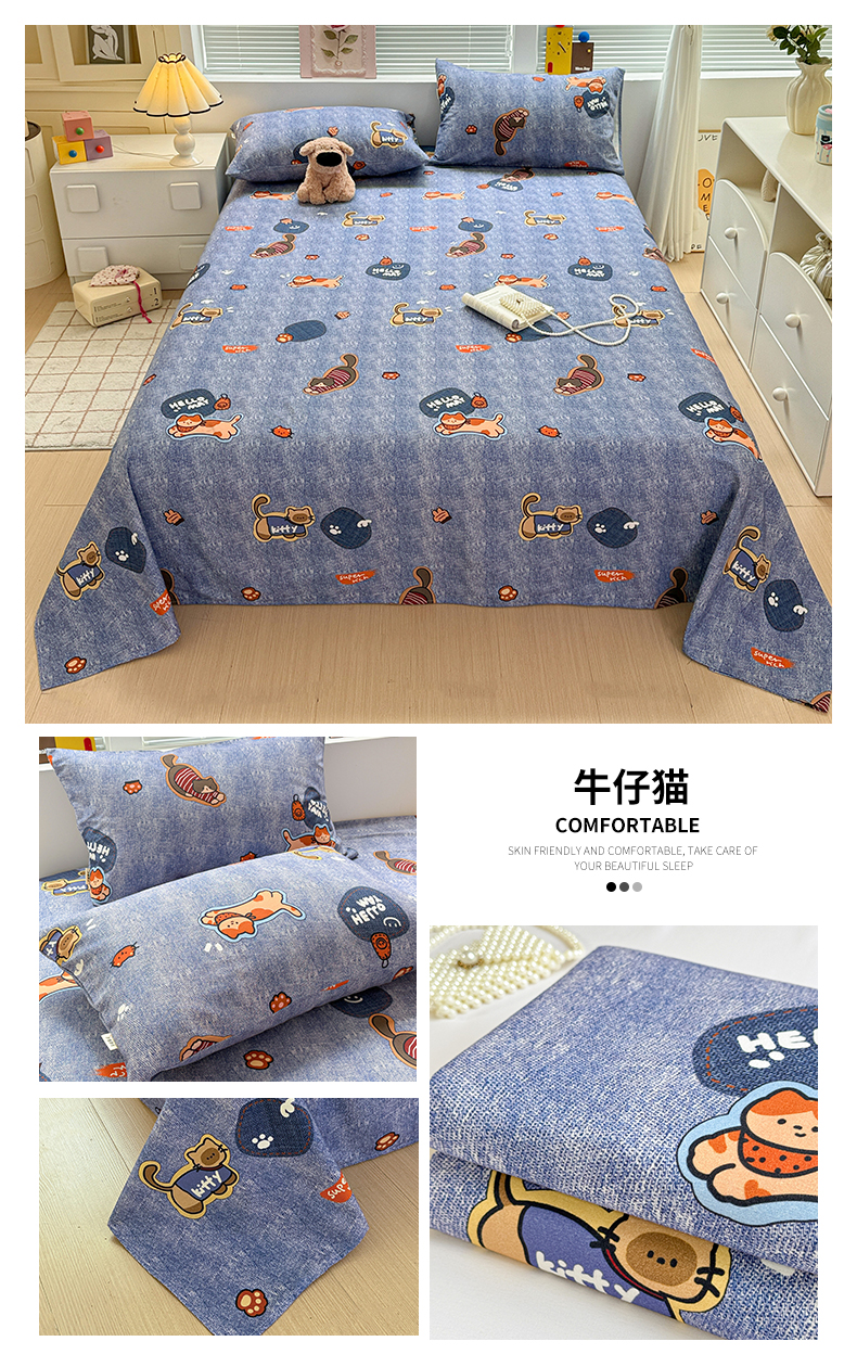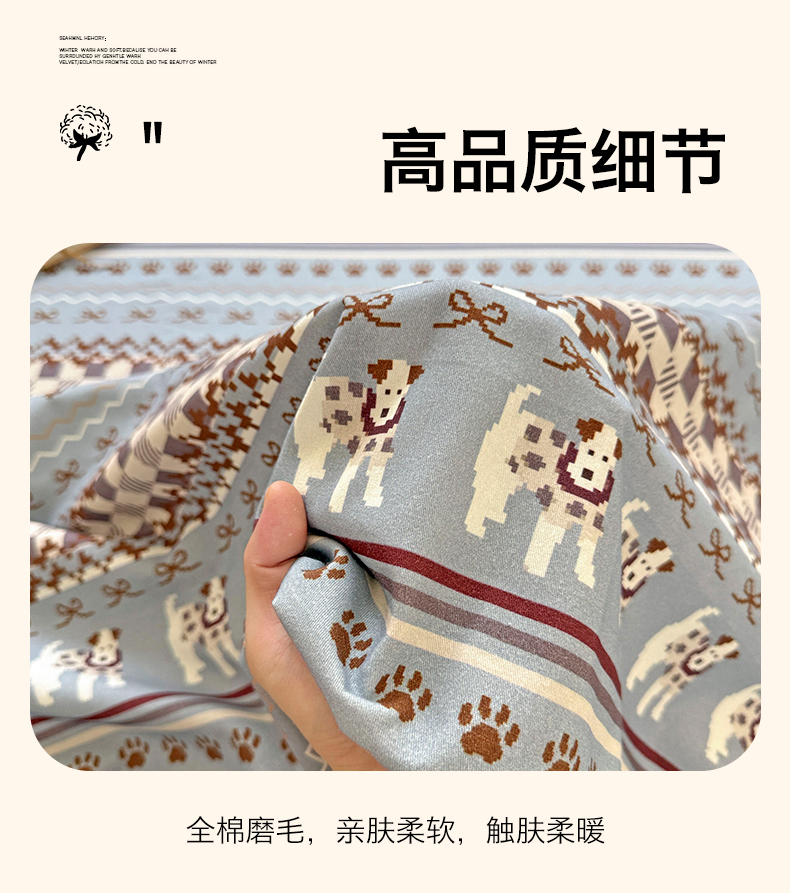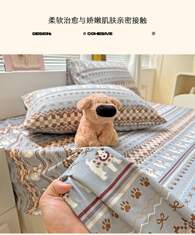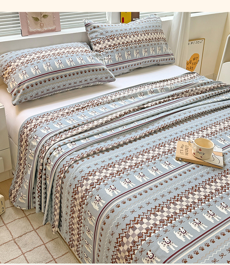 • 91家纺网 家纺一手货源 找家纺 名兮家居 2025秋冬新款100%全棉纯棉磨毛单床单 床单单件 蝴蝶结小狗-蓝