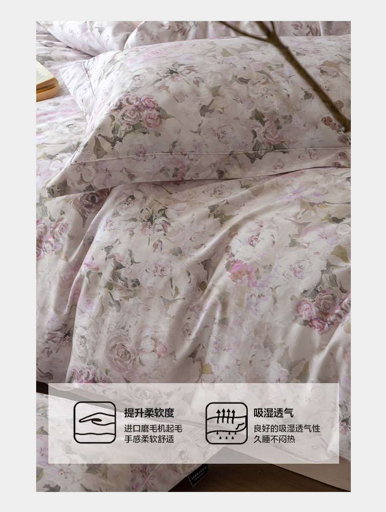 当前位置: 91家纺网 > 商品网购 > 床品套件 > 四件套 > 全棉普通四件套 > 三味舒屋 2025新款50s全棉纯棉磨毛印花四件套-秋日绮梦 塞纳花影粉