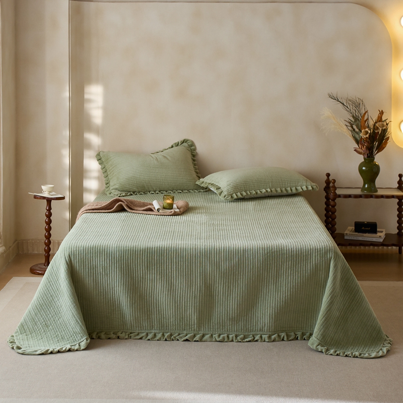 商品名称:安莱生活 2025年秋冬新品200克牛奶绒花边床盖单品床盖床盖单件 嫩黄
