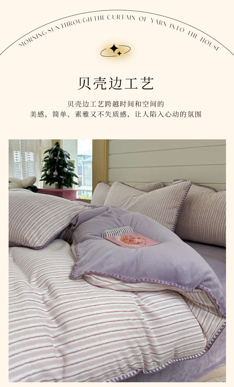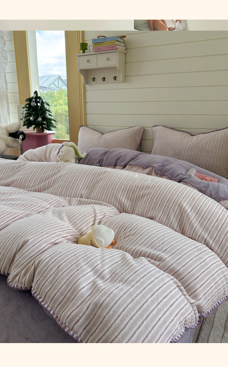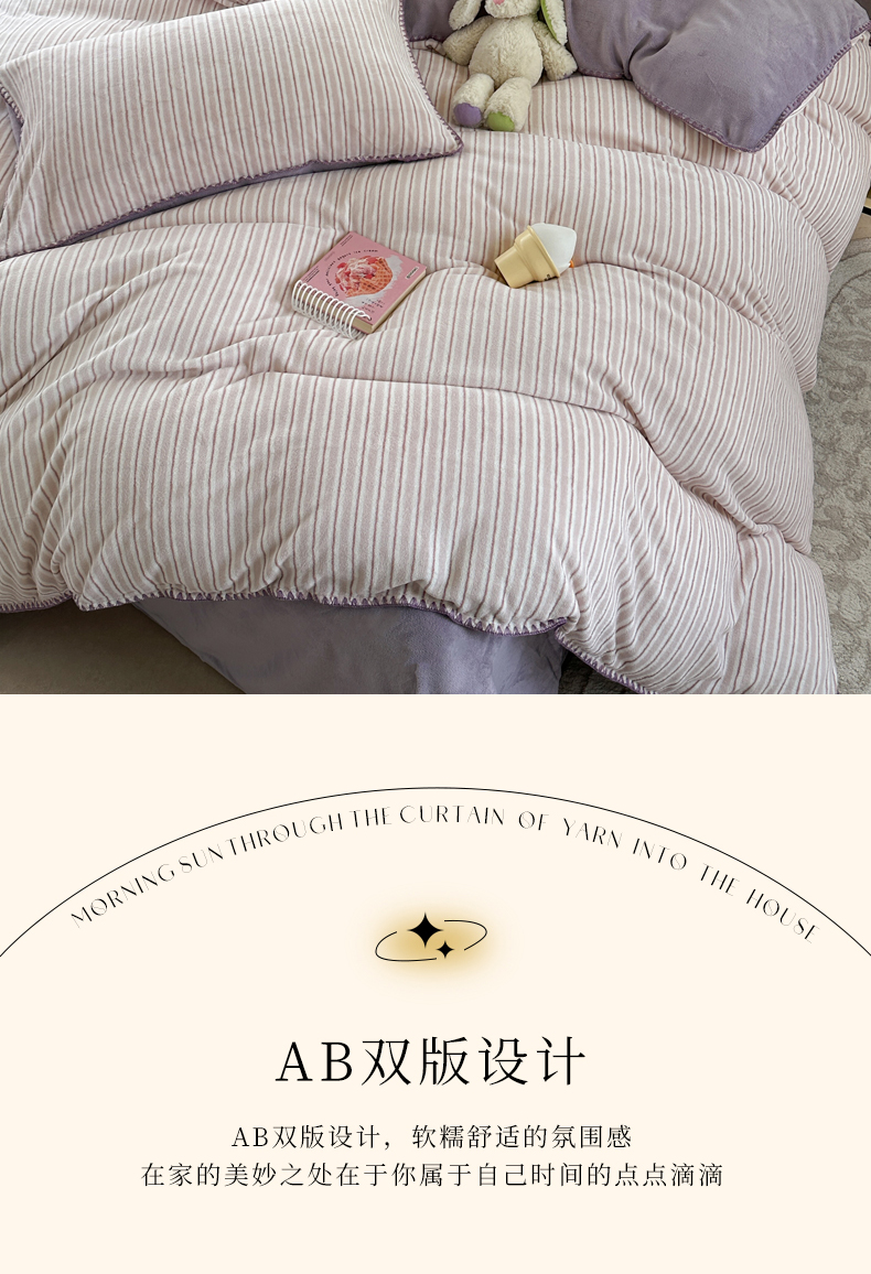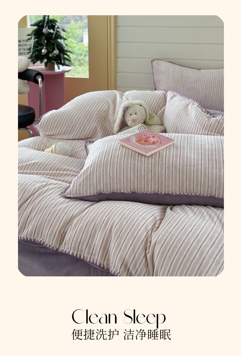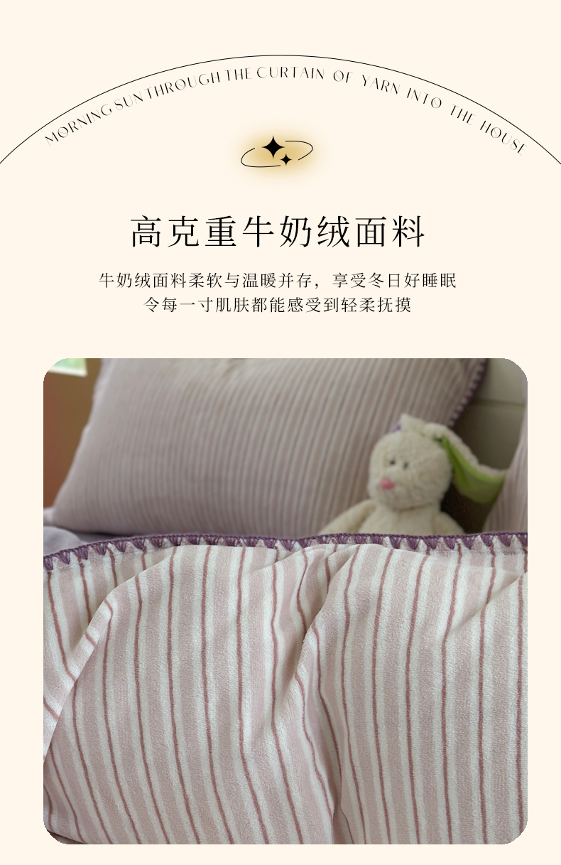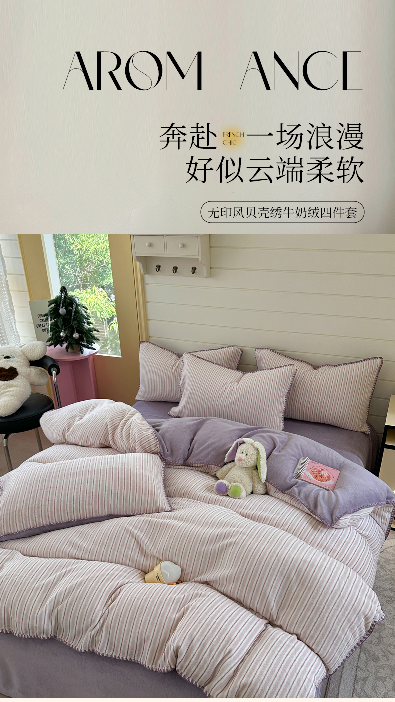 当前位置: 91家纺网 > 商品网购 > 床品套件 > 四件套 > 牛奶绒四件套 > 三朵家纺 2025新款无印风三角针牛奶绒四件套 香芋紫小条
