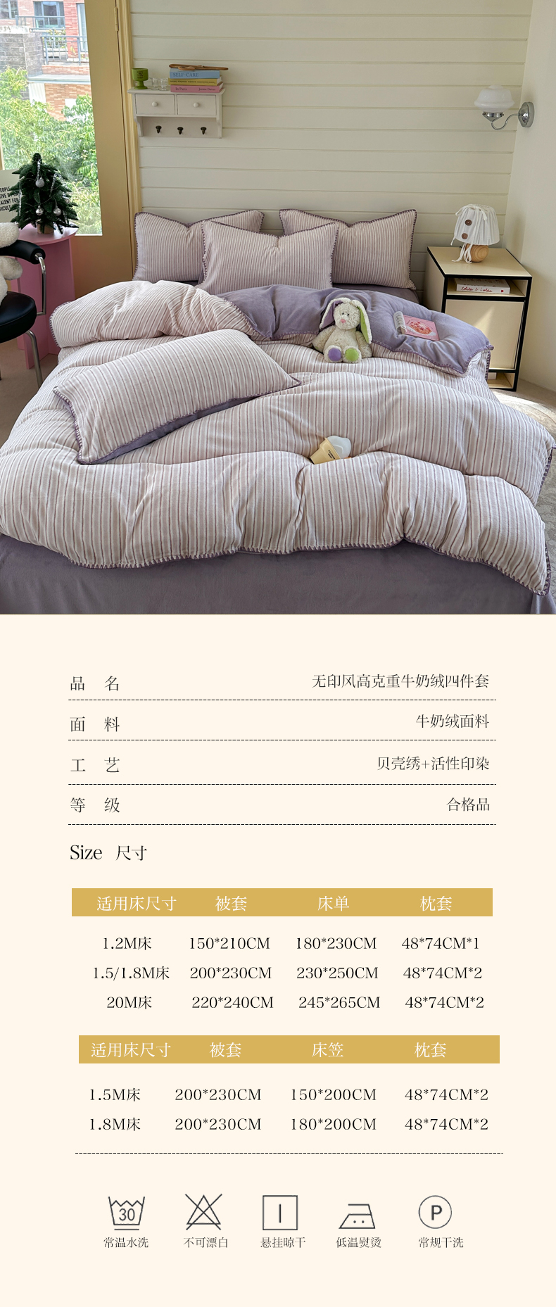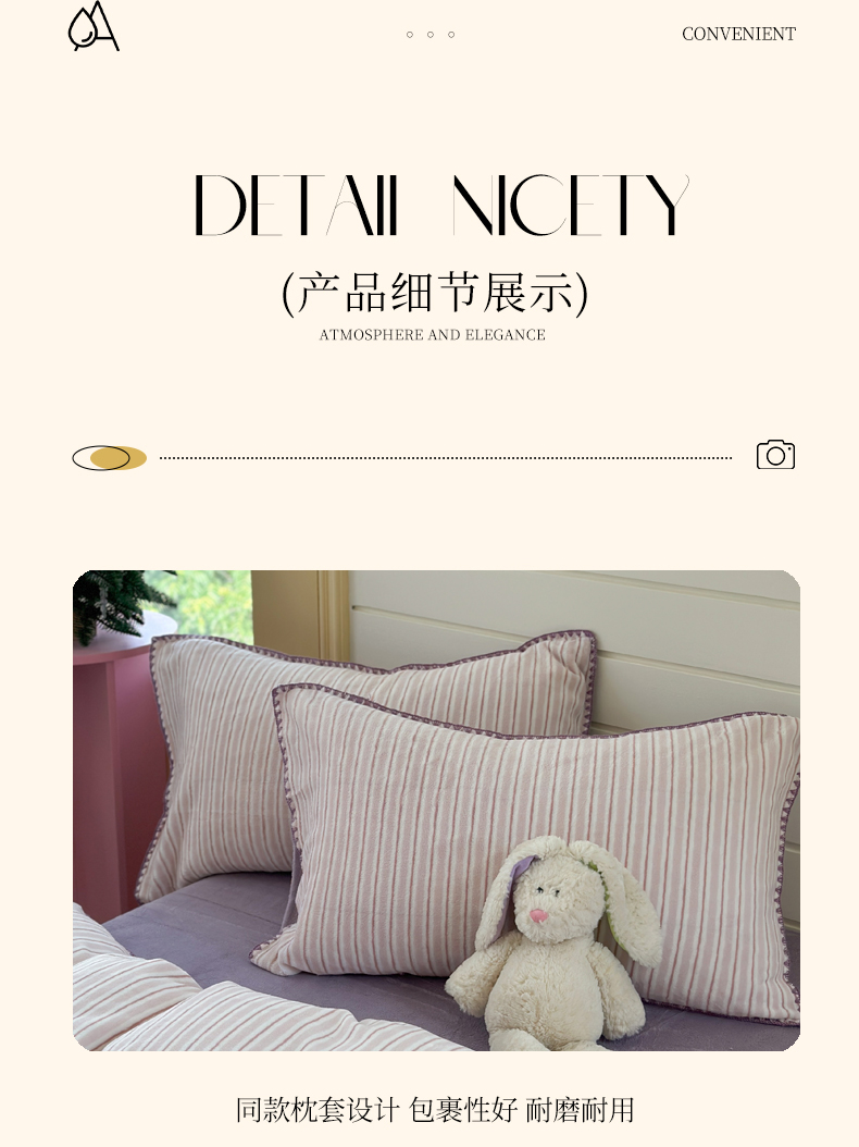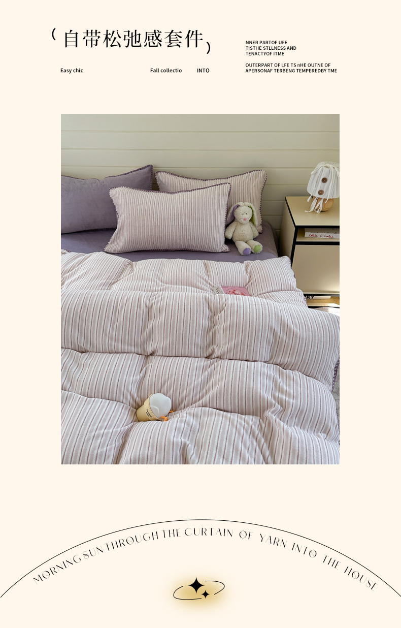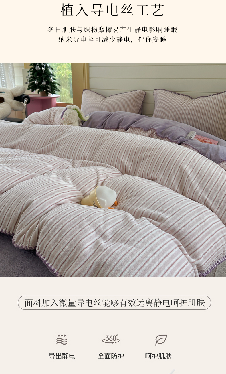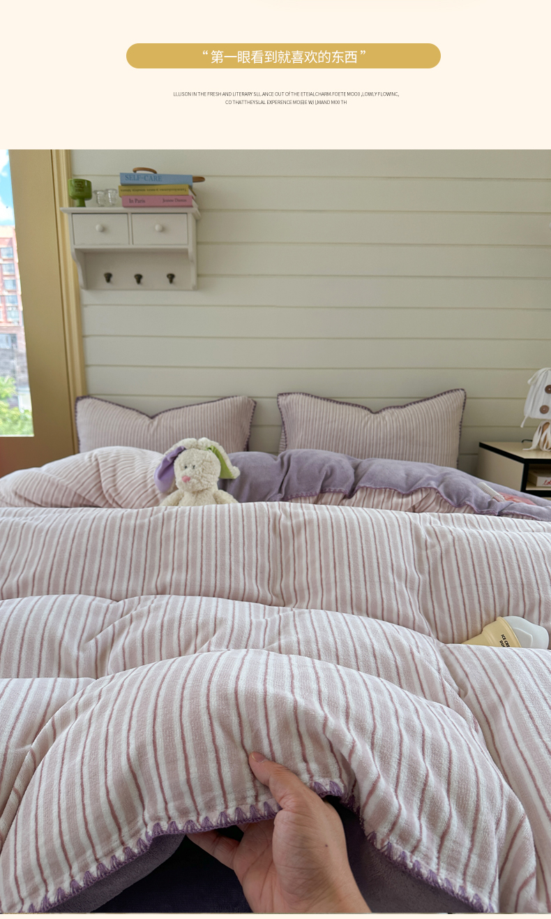 当前位置: 91家纺网 > 商品网购 > 床品套件 > 四件套 > 牛奶绒四件套 > 三朵家纺 2025新款无印风三角针牛奶绒四件套 香芋紫小条
