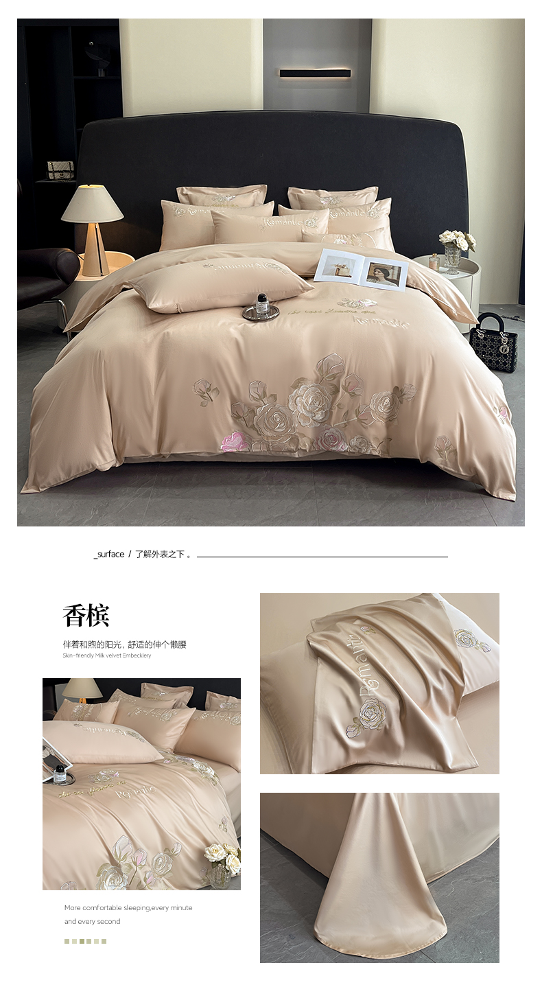 博纳家纺 2025新款纯棉绣花四件套-繁花似梦 繁花似梦-香槟