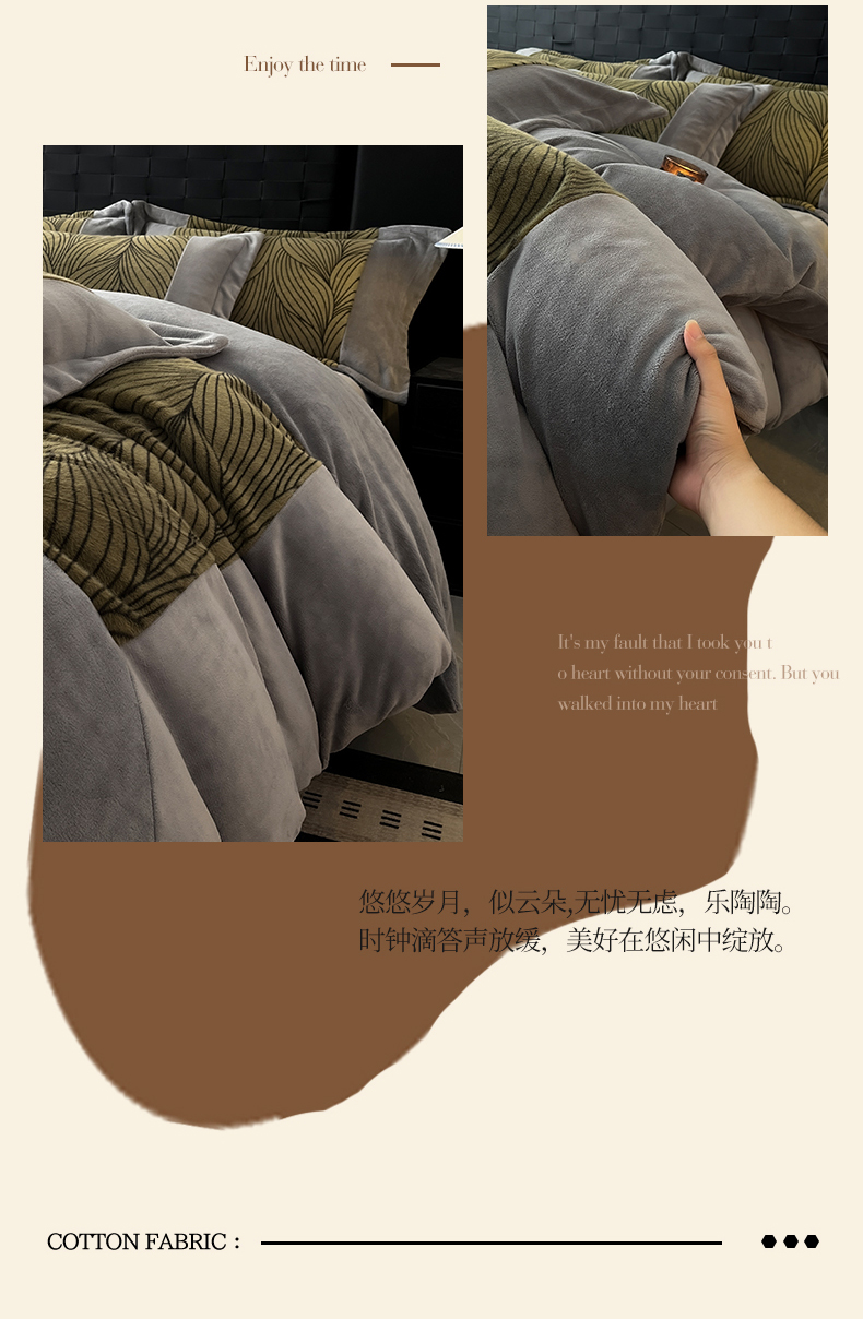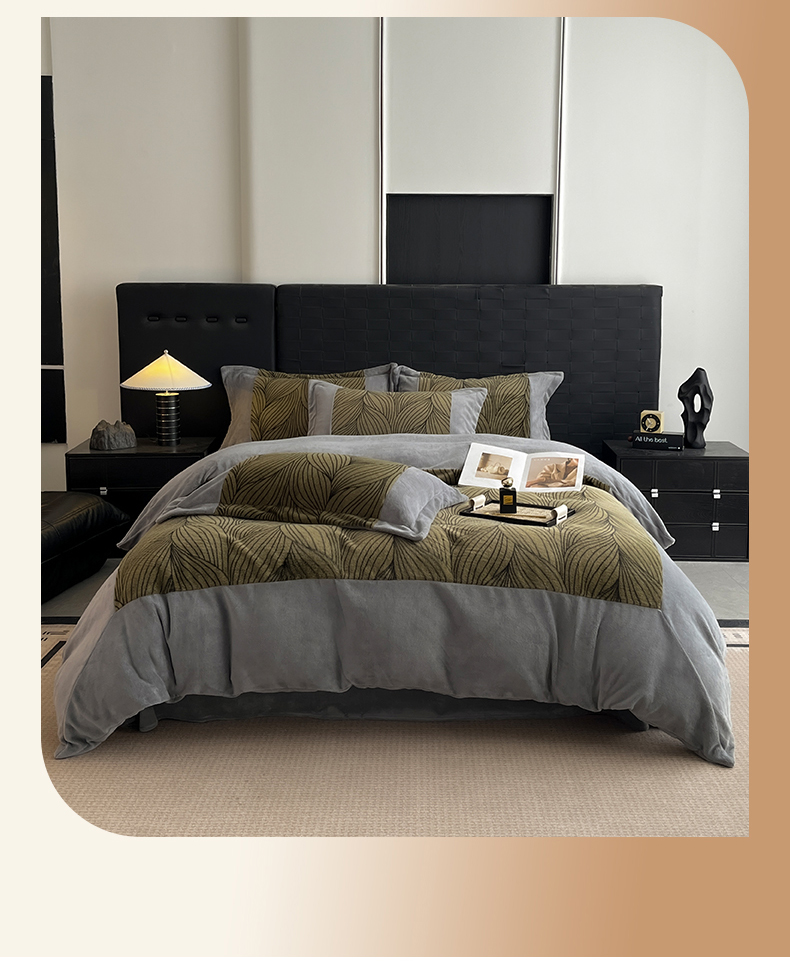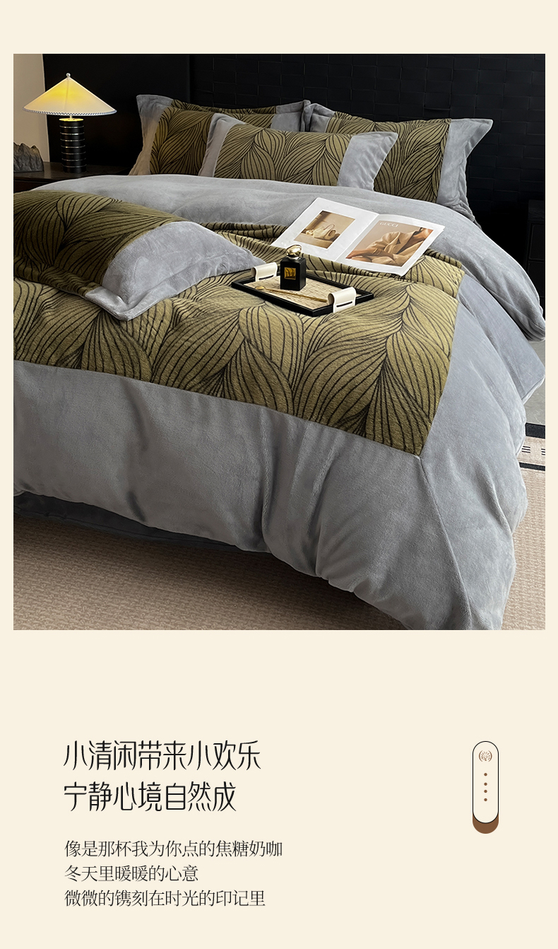 羚羊语家纺 2025新款轻奢风雪貂绒牛奶绒四件套大拼角工艺貂毛绒升级款兔毛绒现代简约轻奢风三件套-左岸河畔 雪貂绒-尘光集