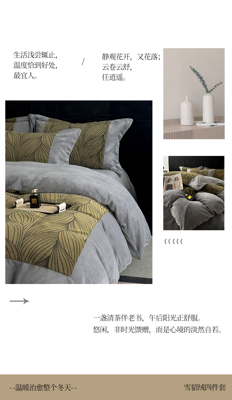 (总)羚羊语家纺 2025新款轻奢风雪貂绒牛奶绒四件套大拼角工艺貂毛绒升级款兔毛绒现代简约轻奢风三件套-左岸河畔,雪貂绒-影几何,雪貂绒-松间谧,雪貂绒-尘光集,雪貂绒-柔疏影,雪貂绒-珀影调