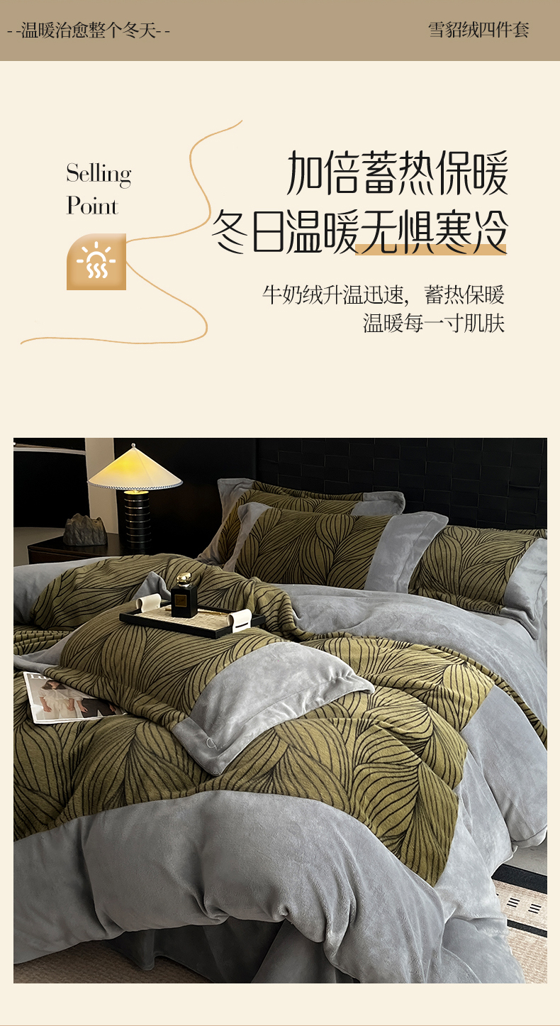 商品名称:羚羊语家纺 2025新款轻奢风雪貂绒牛奶绒四件套大拼角工艺貂毛绒升级款兔毛绒现代简约轻奢风三件套-左岸河畔 雪貂绒-尘光集