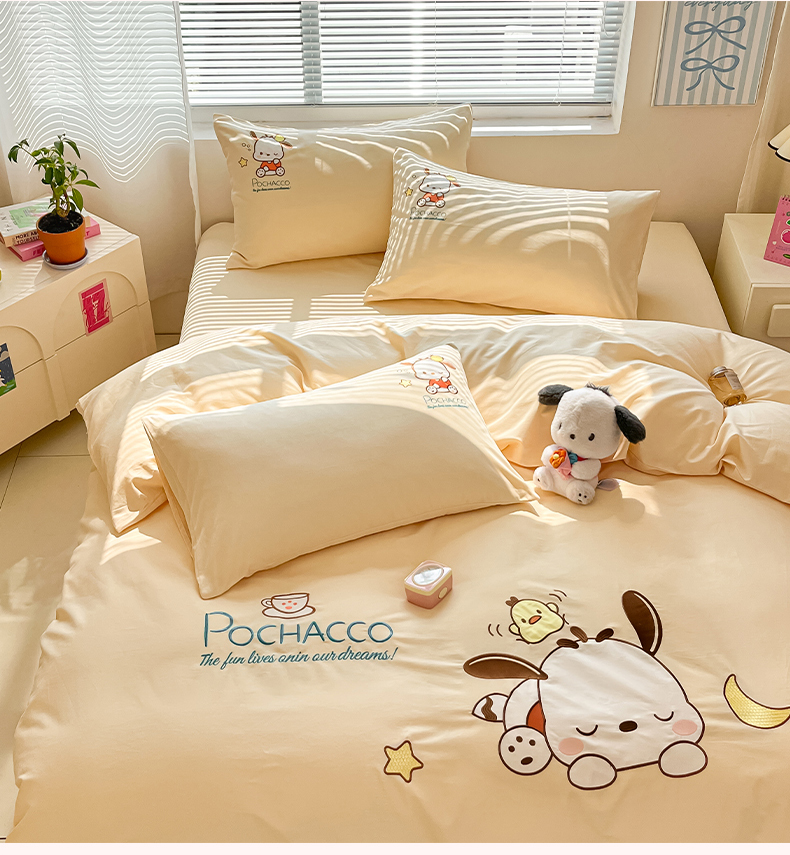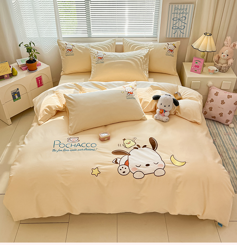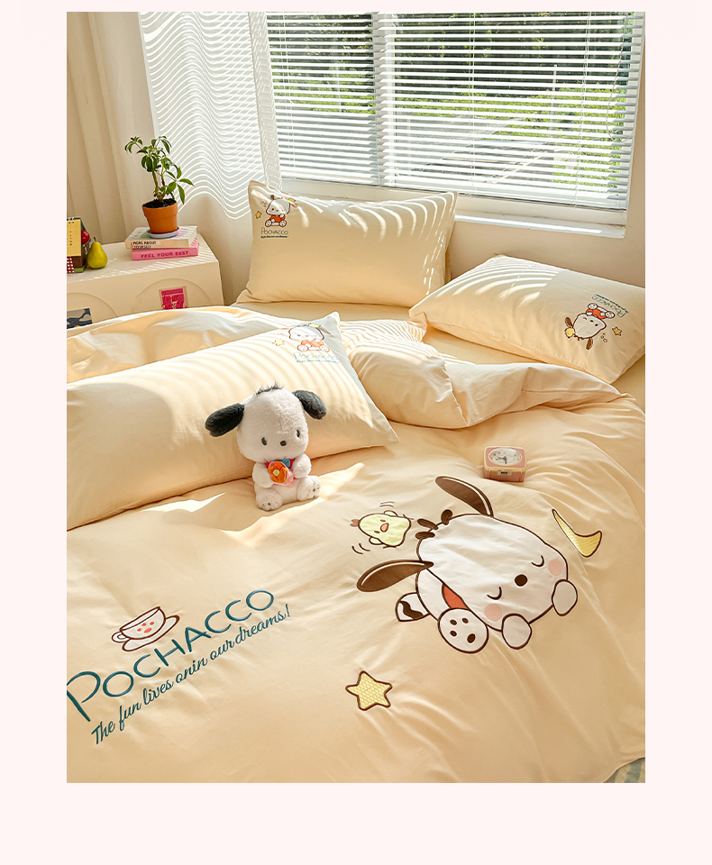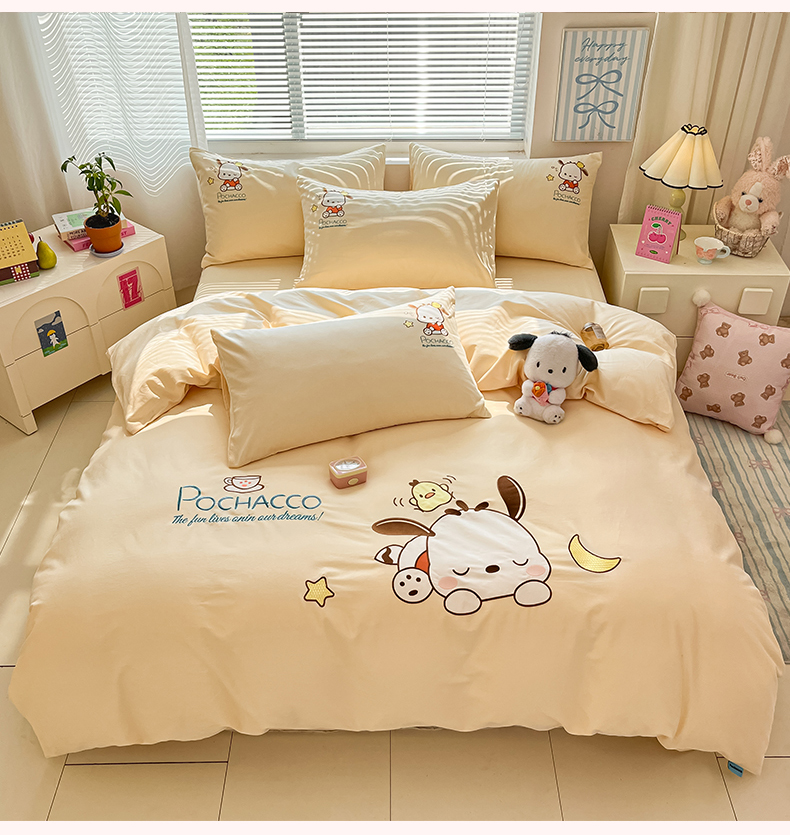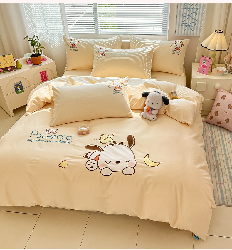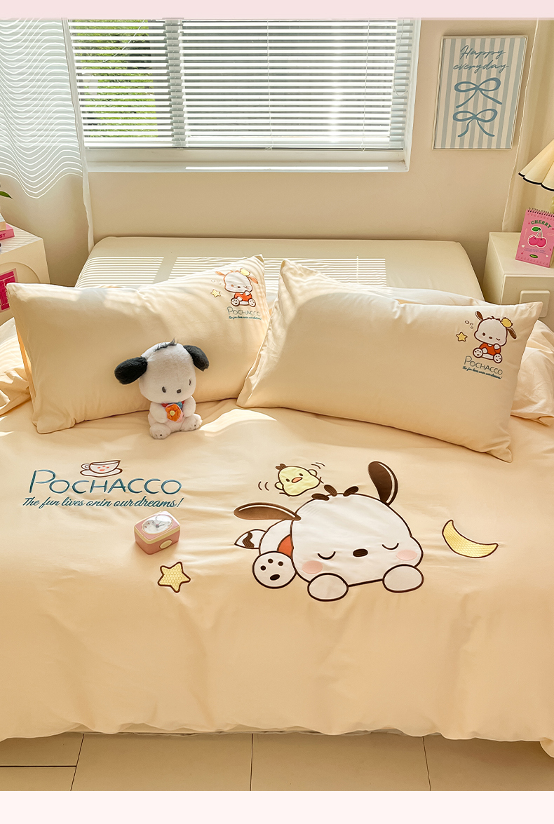 当前位置: 91家纺网 > 商品网购 > 床品套件 > 四件套 > 全棉普通四件套 > 蓝邻家纺 2025年新款全棉纯棉云柔棉三丽鸥刺绣四件套系列 晚安帕恰狗