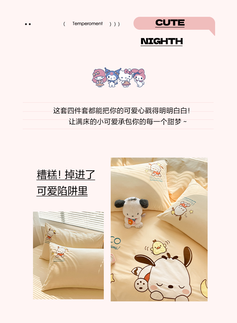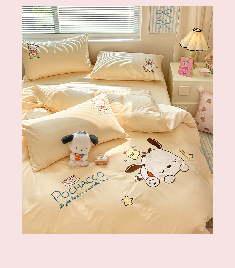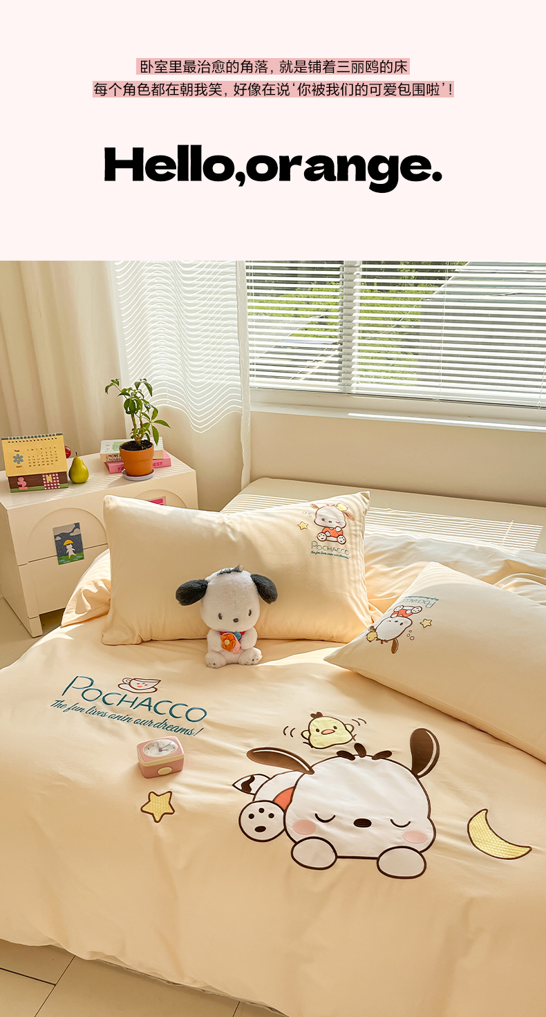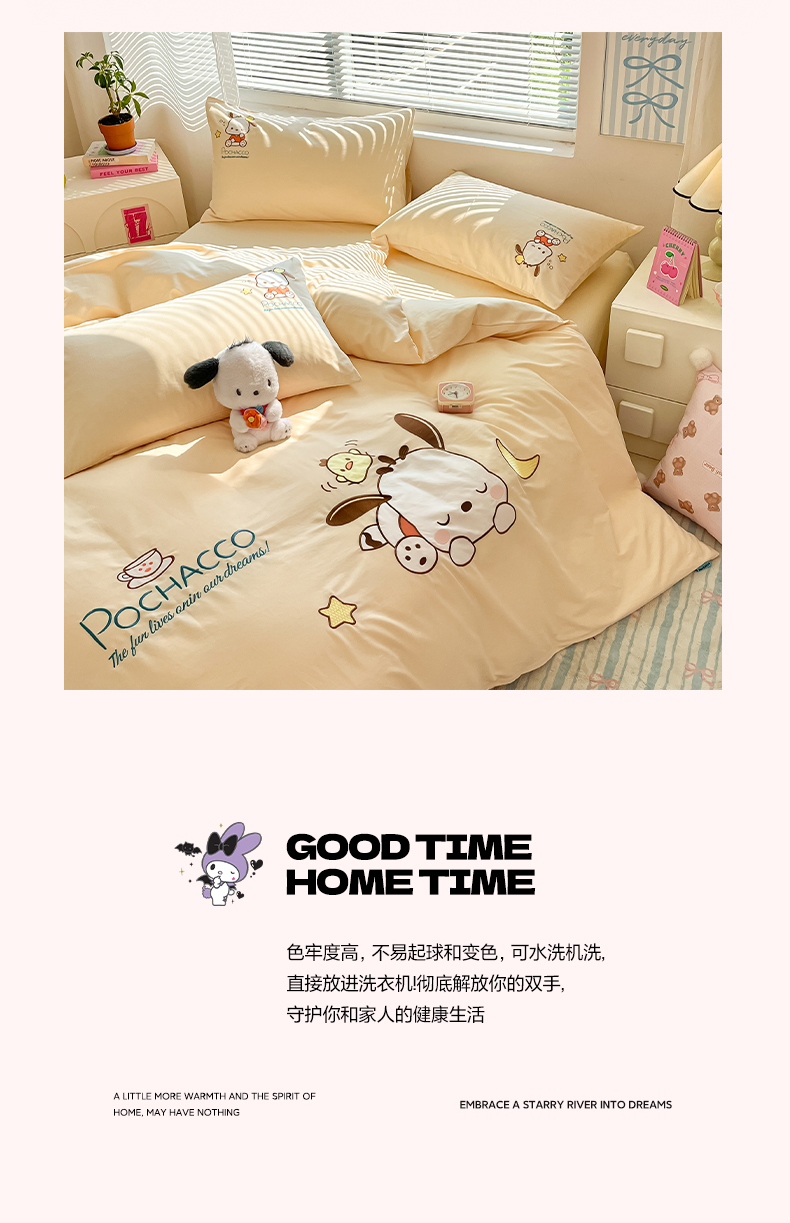 当前位置: 91家纺网 > 商品网购 > 床品套件 > 四件套 > 全棉普通四件套 > 蓝邻家纺 2025年新款全棉纯棉云柔棉三丽鸥刺绣四件套系列 晚安帕恰狗