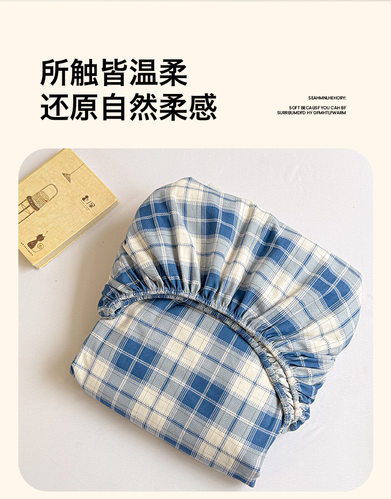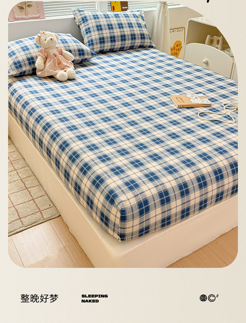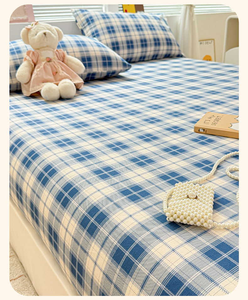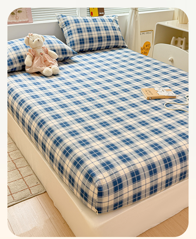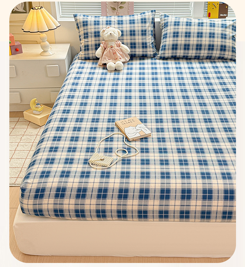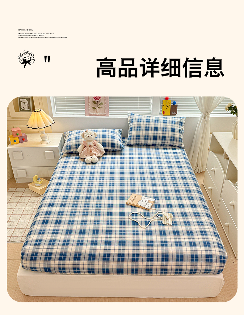 名兮家居 2025新款亲肤舒适全棉纯棉磨毛印花床笠单床笠单品床笠单件床笠 蓝白格语