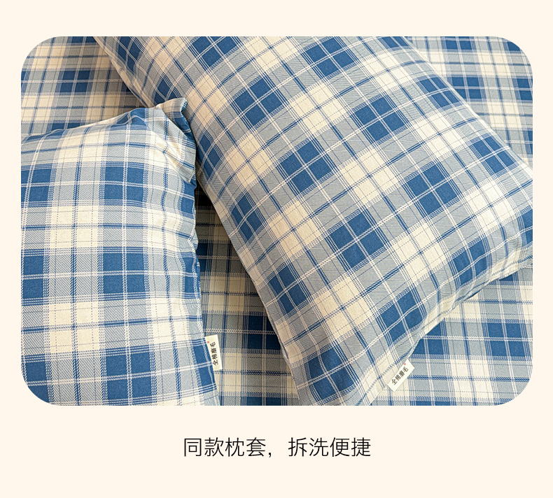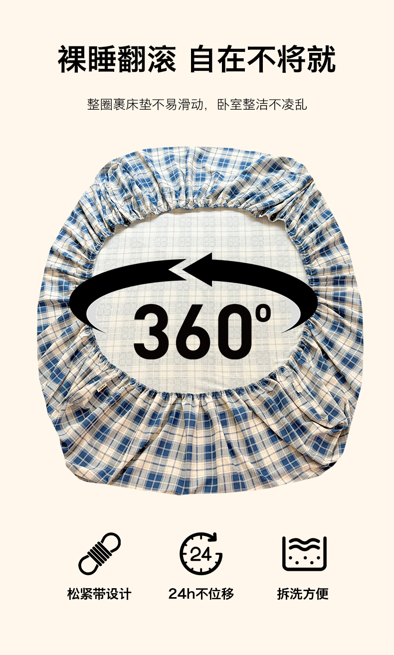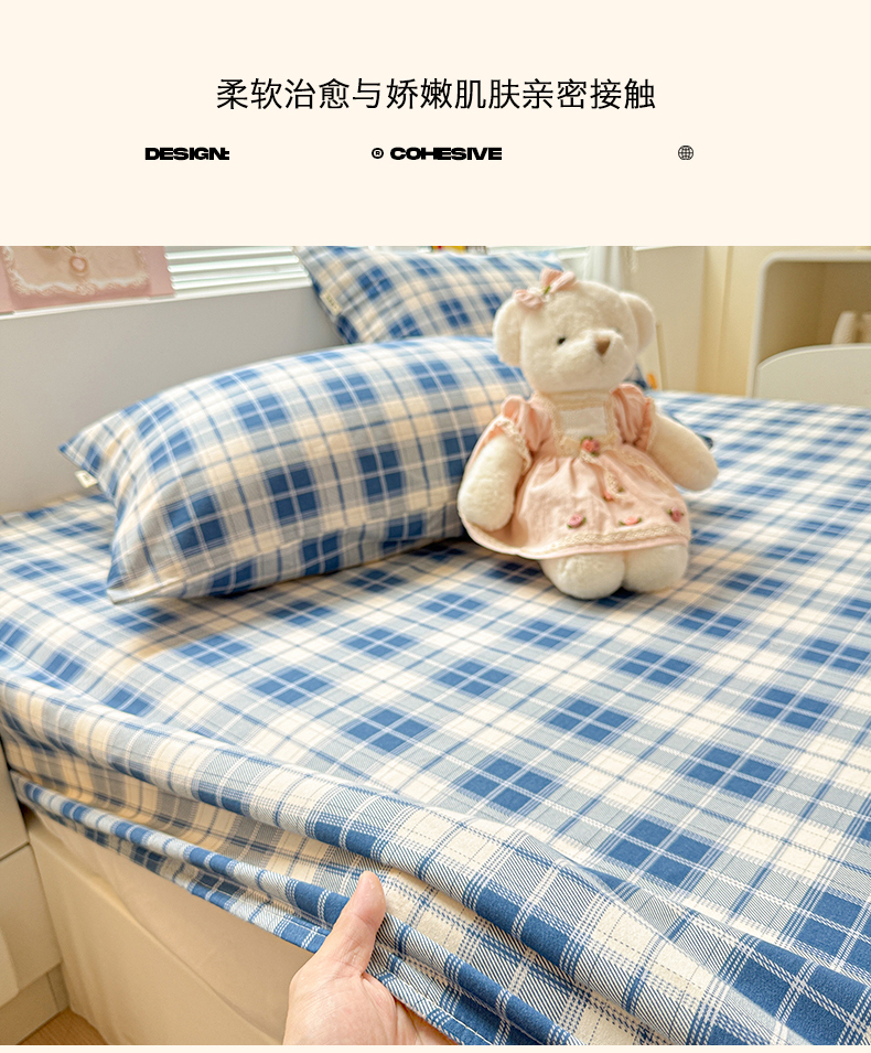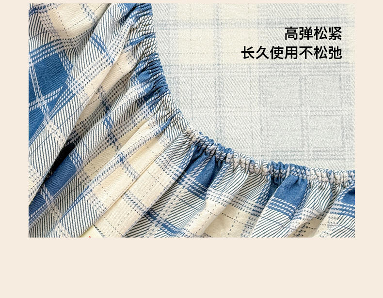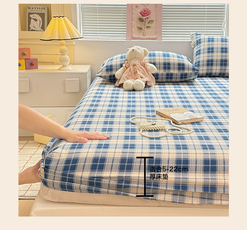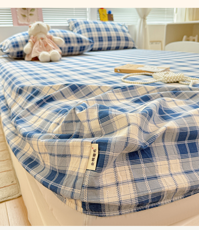 名兮家居 2025新款亲肤舒适全棉纯棉磨毛印花床笠单床笠单品床笠单件床笠 蓝白格语