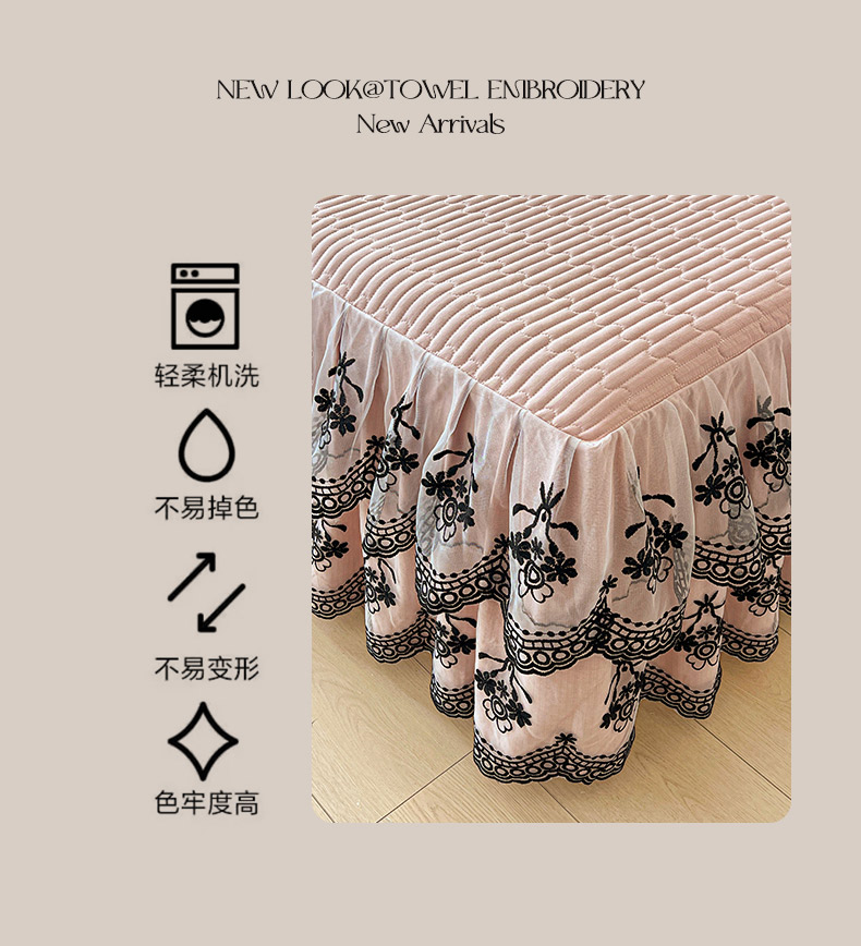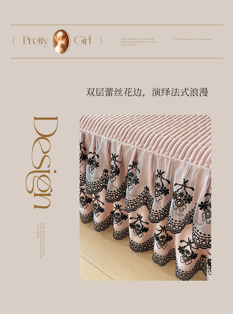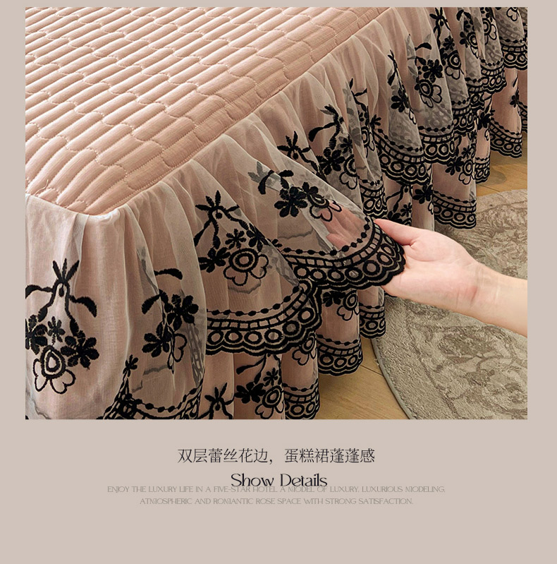 • 91家纺网 家纺一手货源 找家纺 鼎丰家纺 2025新款皱皱纱双层花边夹棉床裙单床裙床裙单品-梦想系列 梦想-浅豆沙