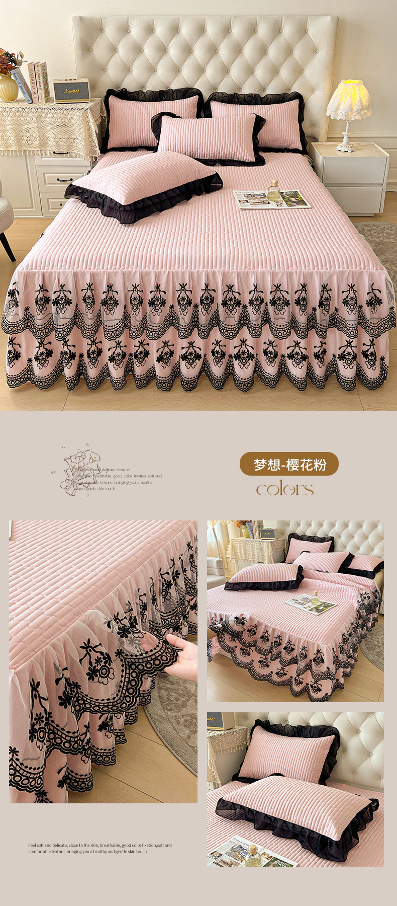 (总)鼎丰家纺 2025新款皱皱纱夹棉床裙三件套-花影系列,花影-豆沙,花影-浅蓝,花影-浅米,花影-浅玉,花影-清新绿,花影-樱花粉