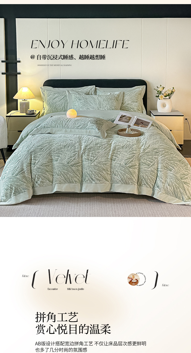 (总)锦铭源家纺 2025新款烂花75D全消光超柔樱花绒牛奶绒四件套拼角四件套【有买家秀】,繁花织梦-粉,繁花织梦-灰绿,繁花织梦-蓝,繁花织梦-浅绿,芦影摇波-粉,芦影摇波-咖,芦影摇波-浅绿,叶影摇风-粉,叶影摇风-灰咖,叶影摇风-咖