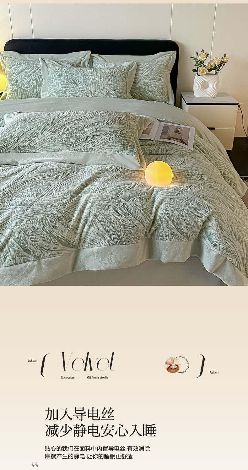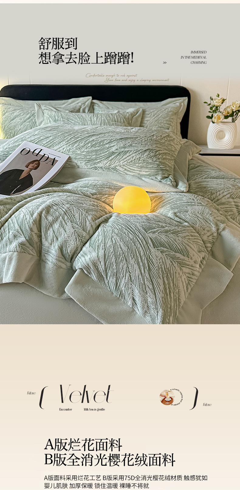 (总)锦铭源家纺 2025新款雪貂绒烂花75D全消光超柔樱花绒双拼角四件套牛奶绒四件套【有买家秀】,轻奢-粉,轻奢-奶白,轻奢-浅绿,轻奢-雅灰