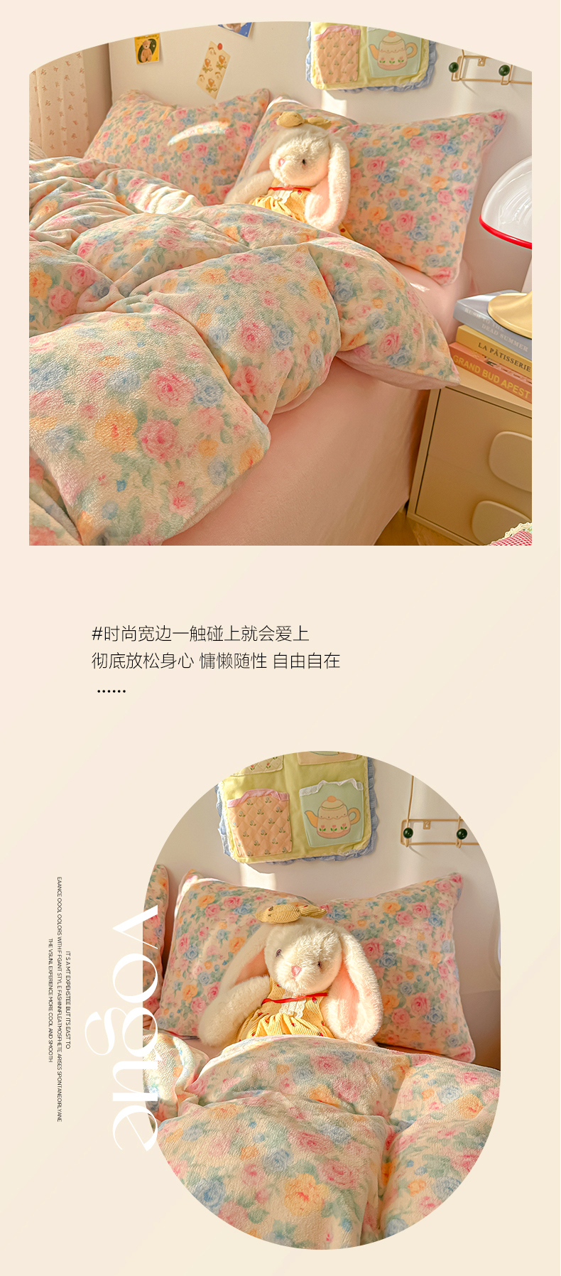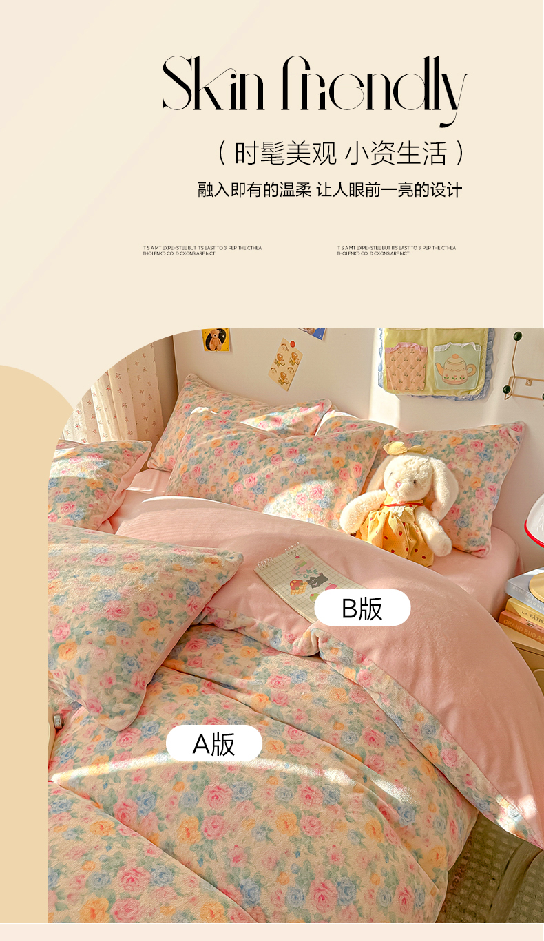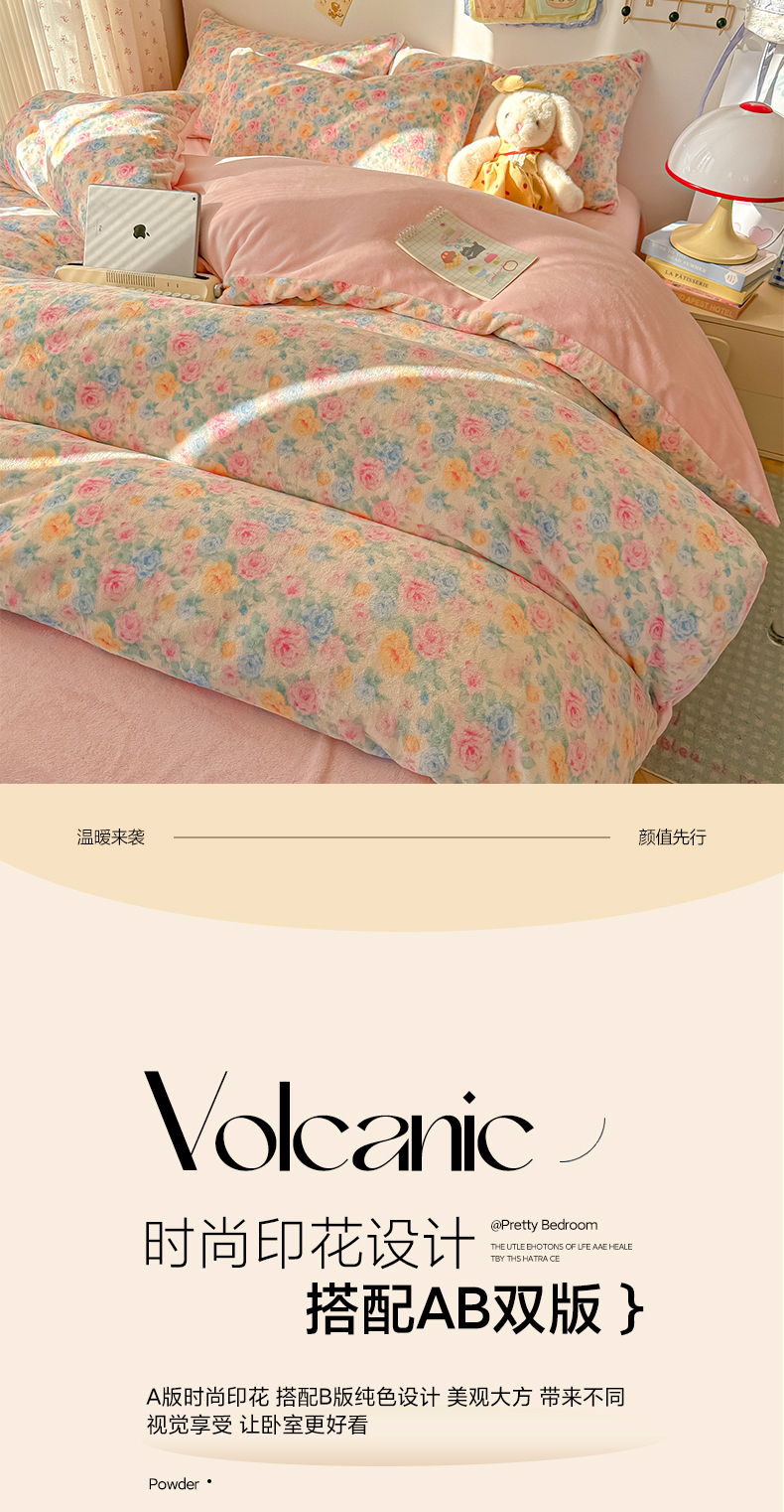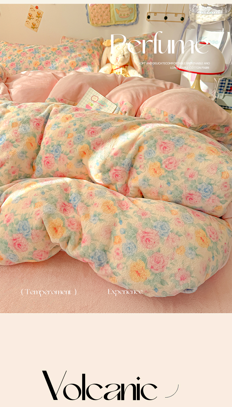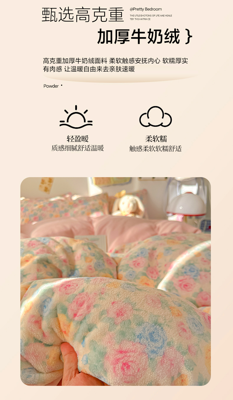 当前位置: 91家纺网 > 商品网购 > 床品套件 > 四件套 > 牛奶绒四件套 > 韩巢家纺 2025新款高克重牛奶绒四件套冬季绒床品被套床单三件套 蔷薇语
