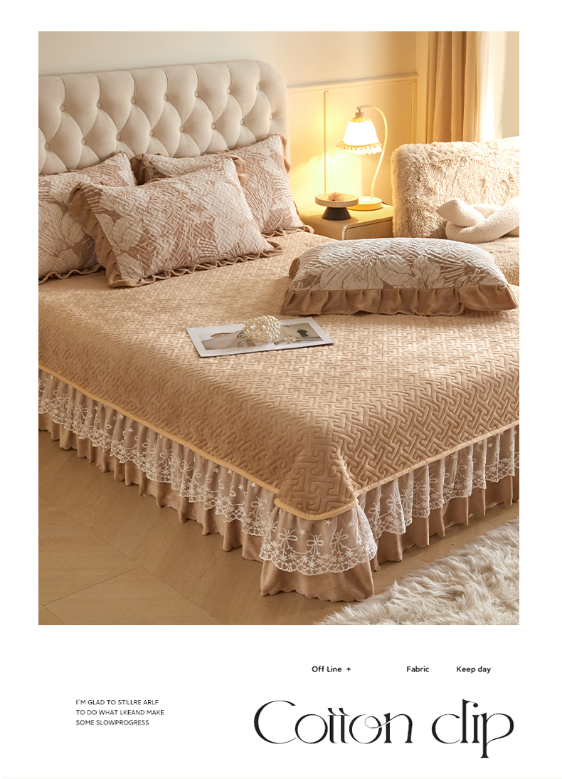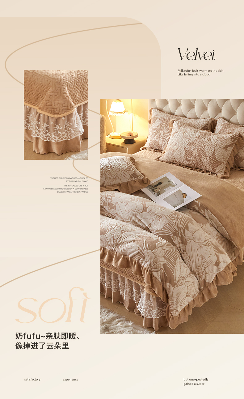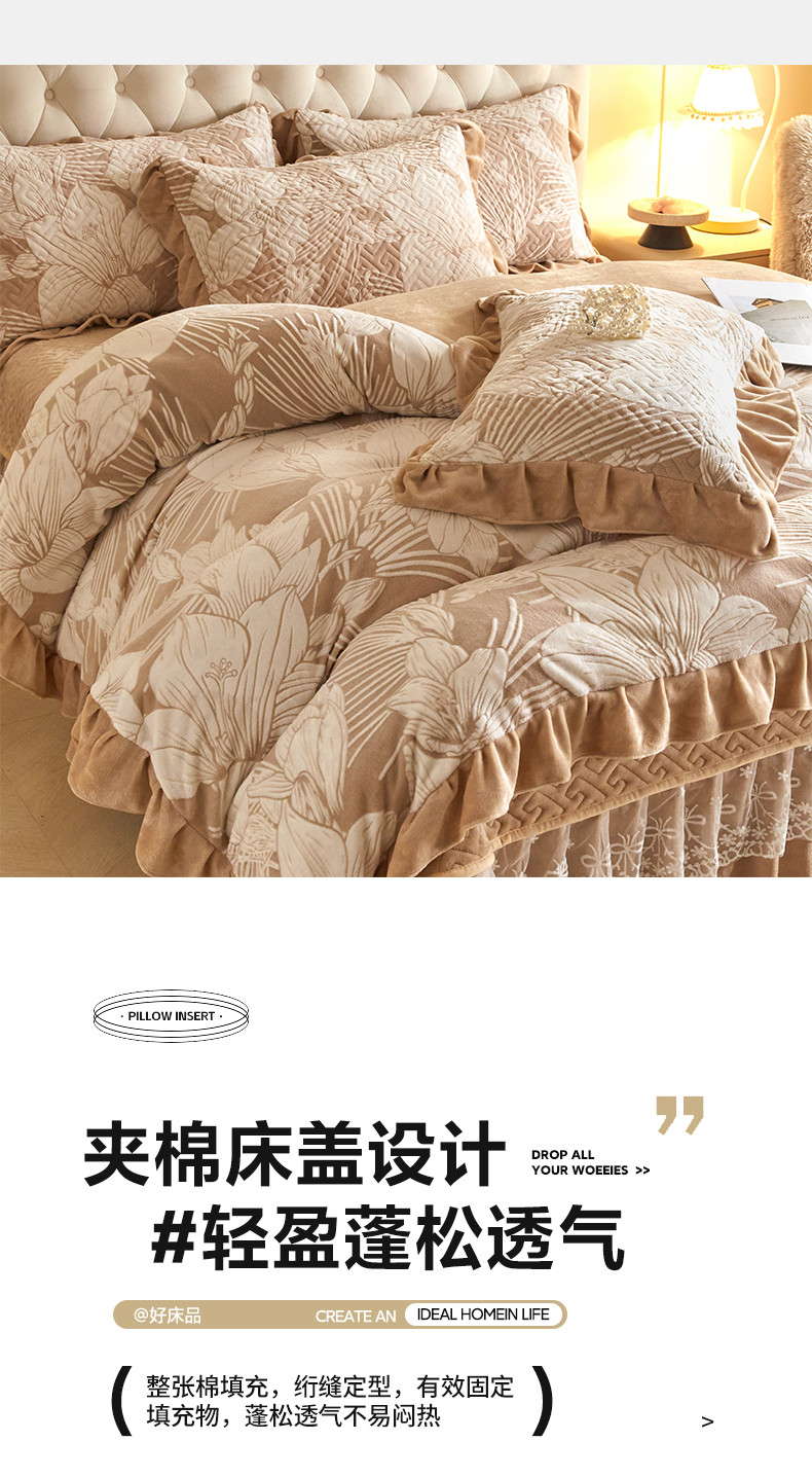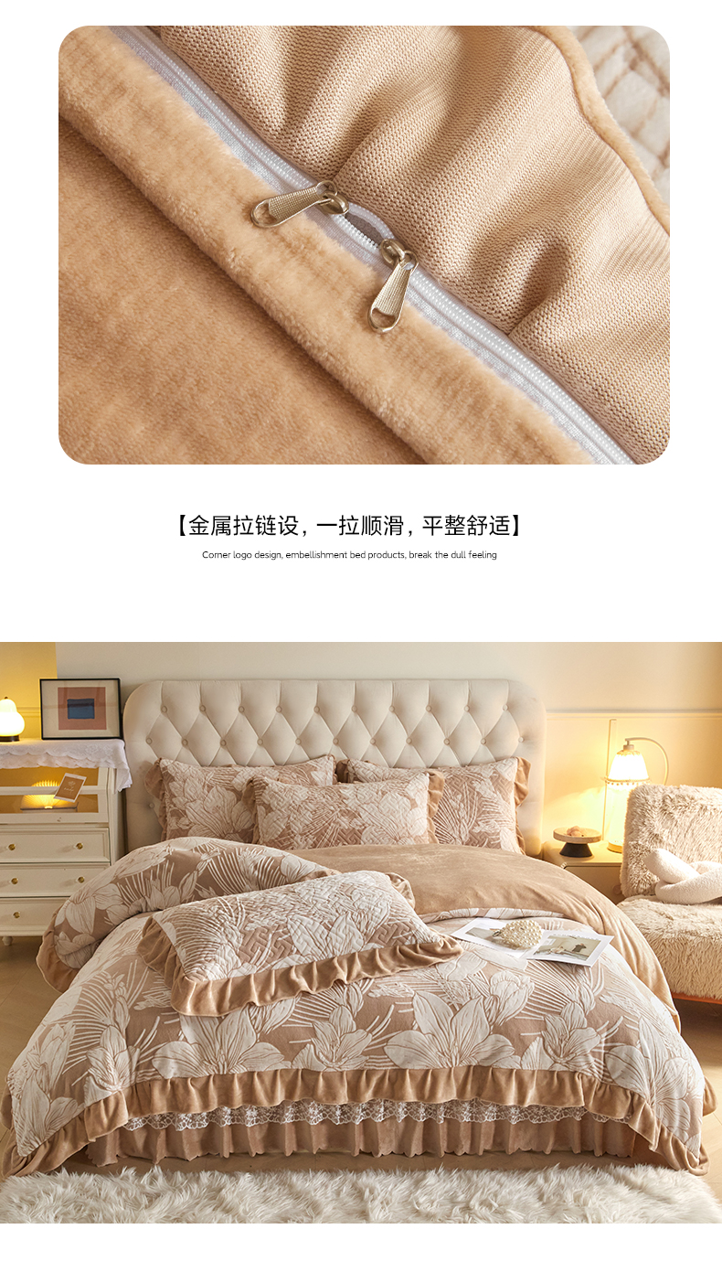 商品名称:畅畅家纺 2025新款11斤高克重新款韩版烂花牛奶绒冬季加厚床盖四件套系列 幽兰-咖