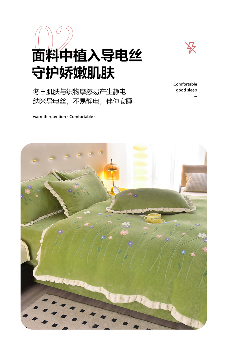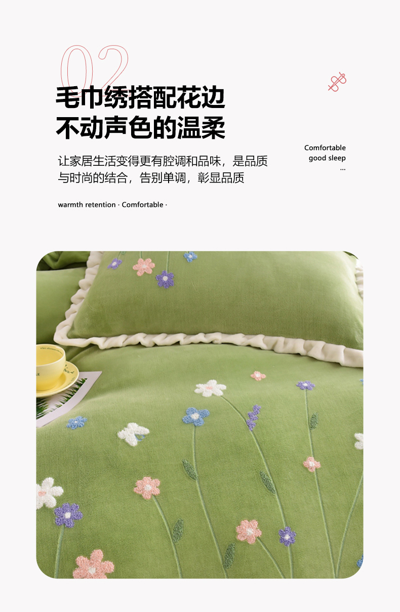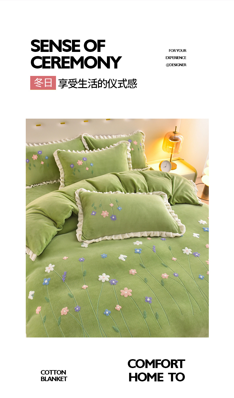商品名称:(总)畅畅家纺 2025新款A类亲肤舒适高克重牛奶绒绣花系列冬季四件套-繁花似锦