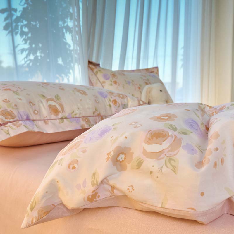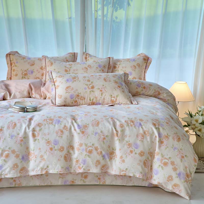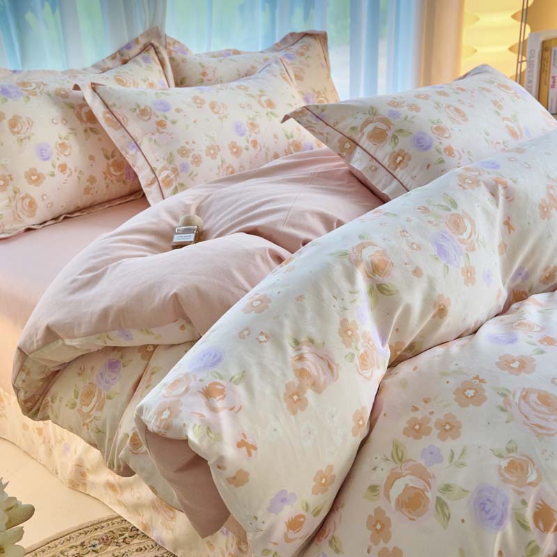 铭博家纺 新款直播爆款网红全棉四件套13070印花吊边一字绣纯棉被套工艺款 花语呢喃,花语呢喃