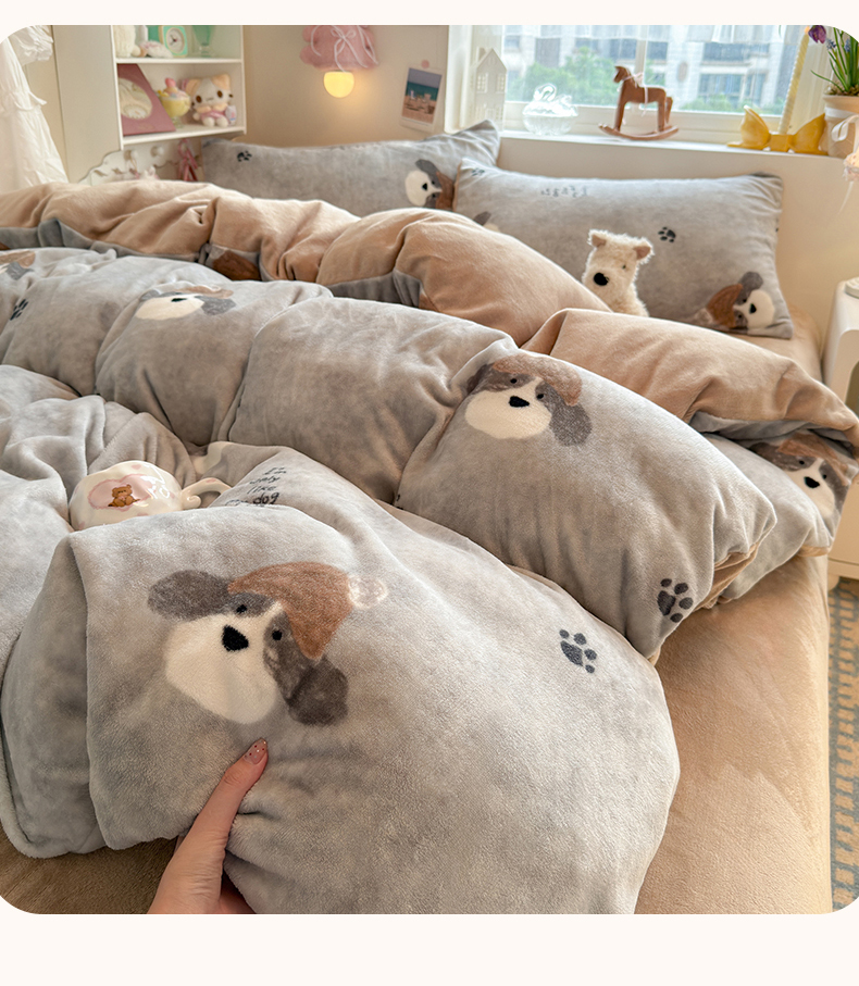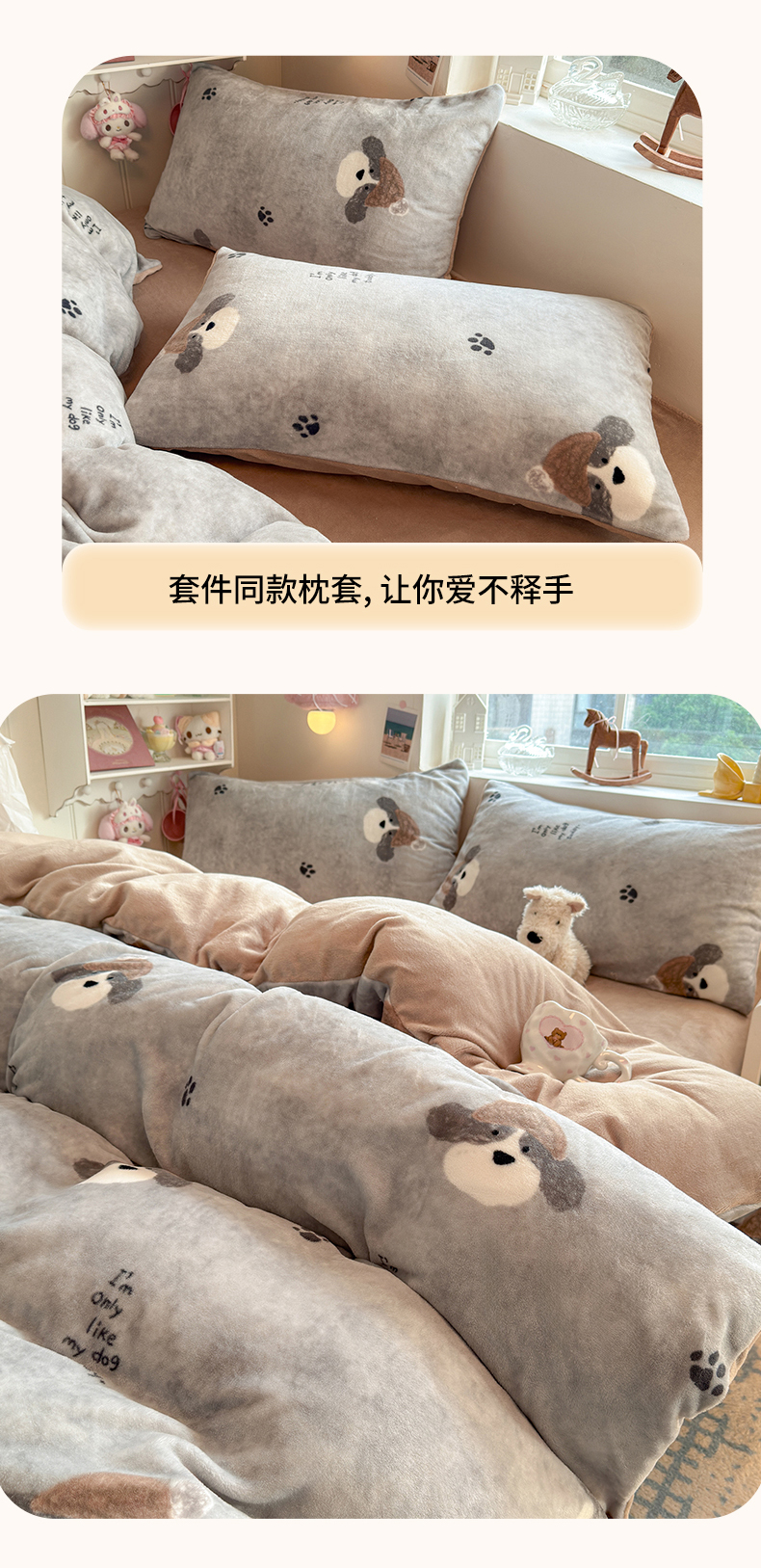 当前位置: 91家纺网 > 商品网购 > 床品套件 > 四件套 > 牛奶绒四件套 > 罗亿家纺 2025新款ins小清新少女奶油卡通可爱加厚200克牛奶绒四件套【3.6公斤】(小红书推荐) 冬日狗