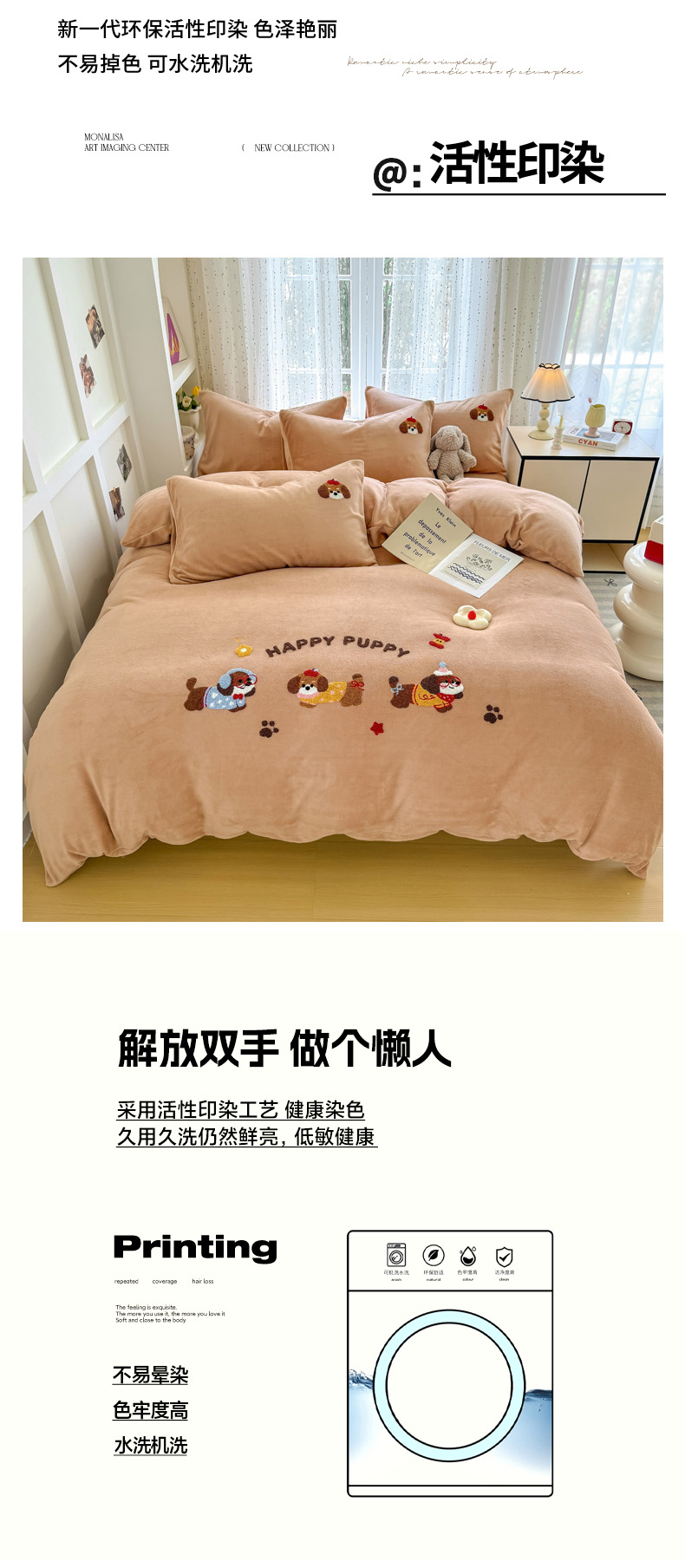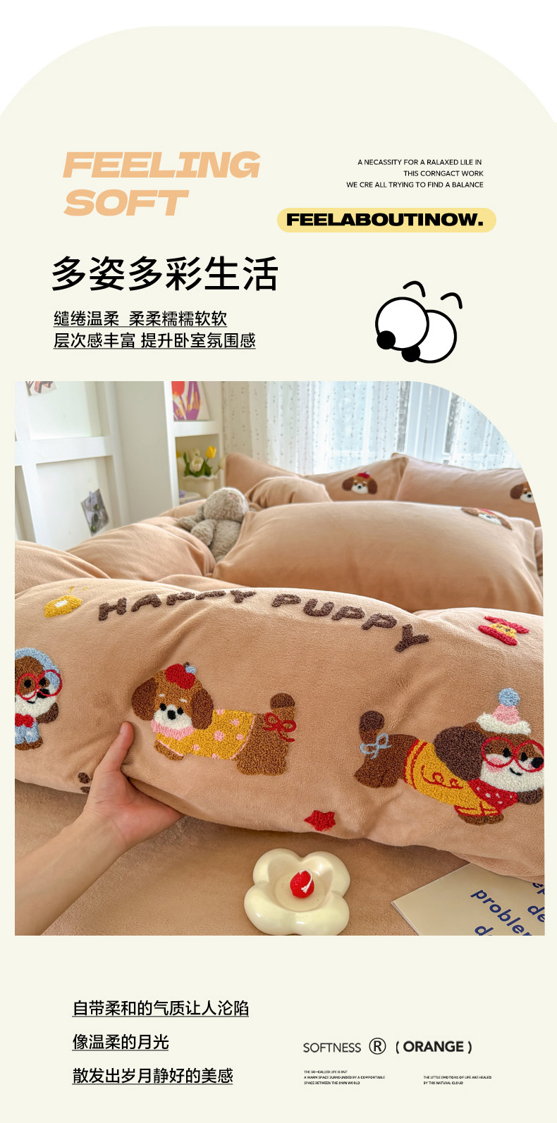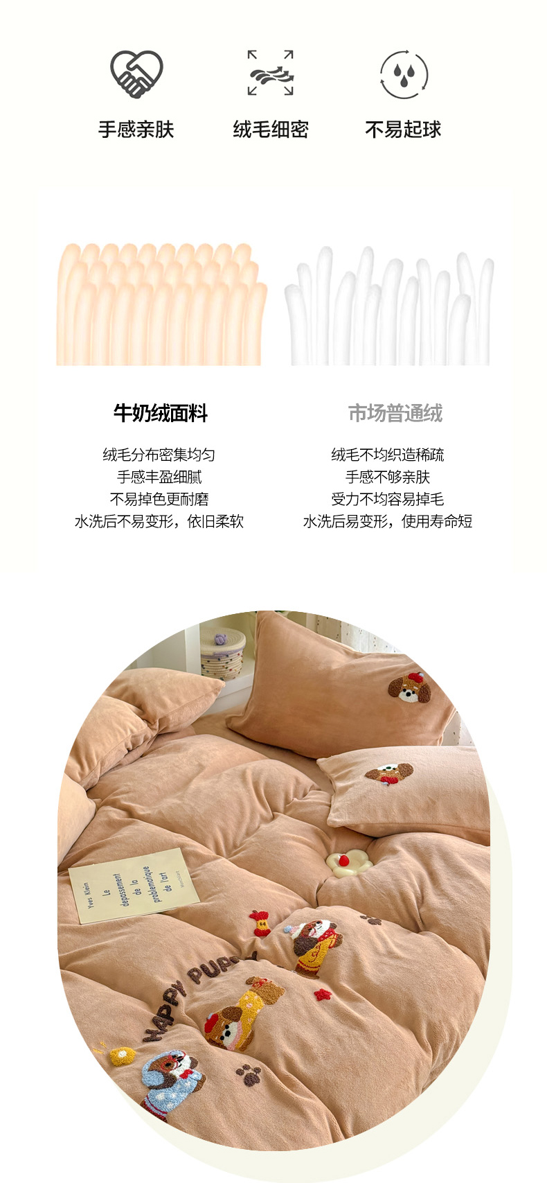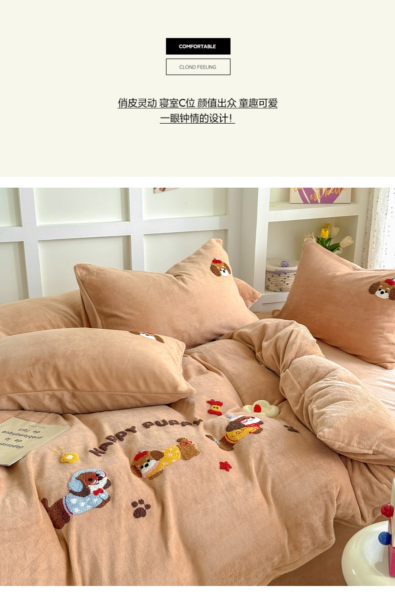 (总)恋佳居 2025新款高克重全工艺牛奶绒毛巾绣四件套,嗨皮狗复古紫,嗨皮狗咖色,嗨皮狗米色,恐龙绿色,恐龙米色,熊猫绿色,熊猫米色,中式熊猫绿色,中式熊猫米色