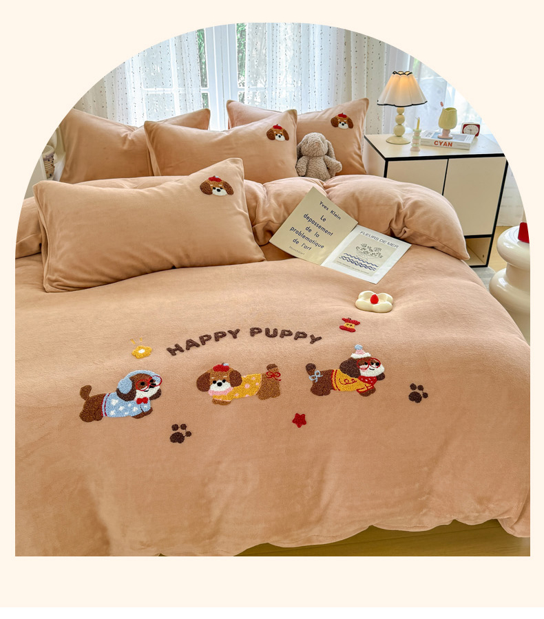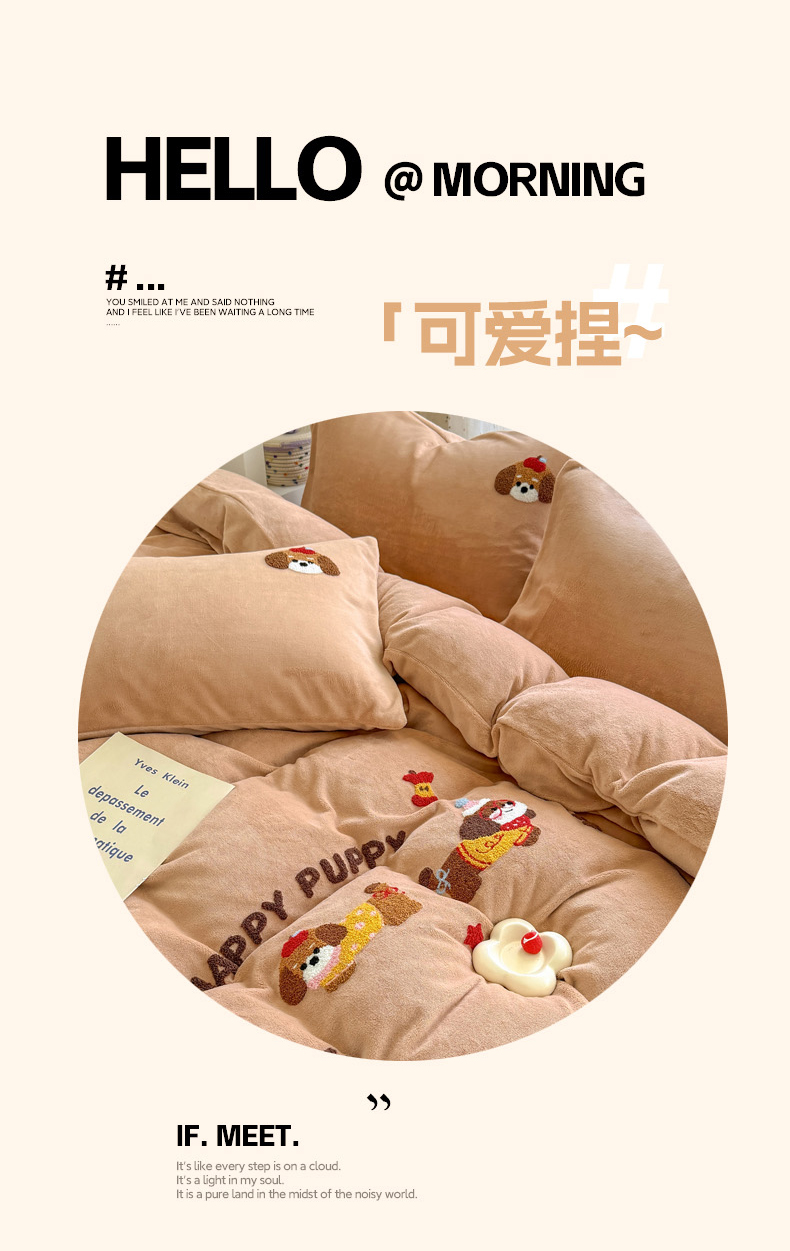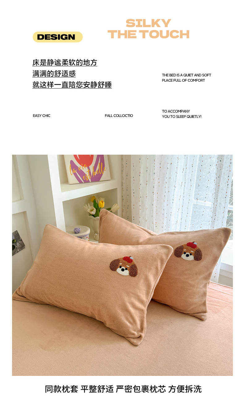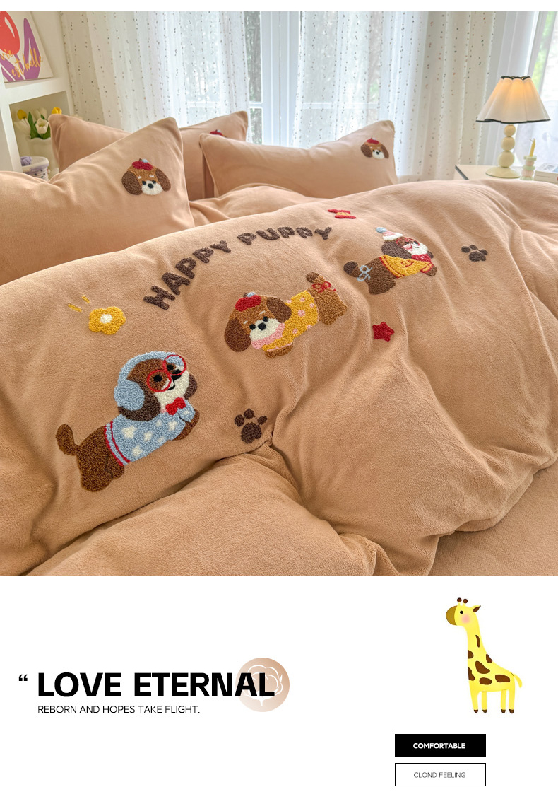 (总)恋佳居 2025新款高克重全工艺牛奶绒毛巾绣四件套,嗨皮狗复古紫,嗨皮狗咖色,嗨皮狗米色,恐龙绿色,恐龙米色,熊猫绿色,熊猫米色,中式熊猫绿色,中式熊猫米色