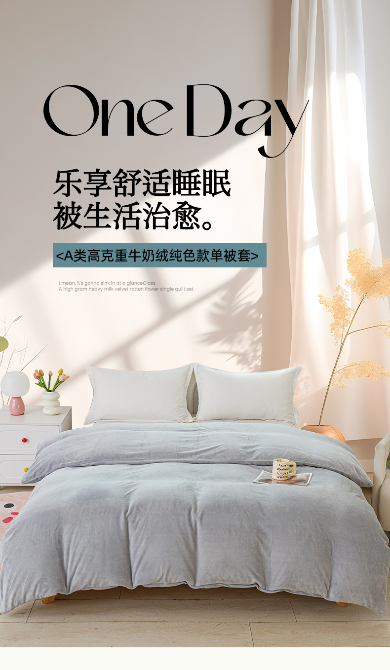 • 91家纺网 家纺一手货源 找家纺 锦罗绣 2025新款牛奶绒肌理纹单被套 浅灰